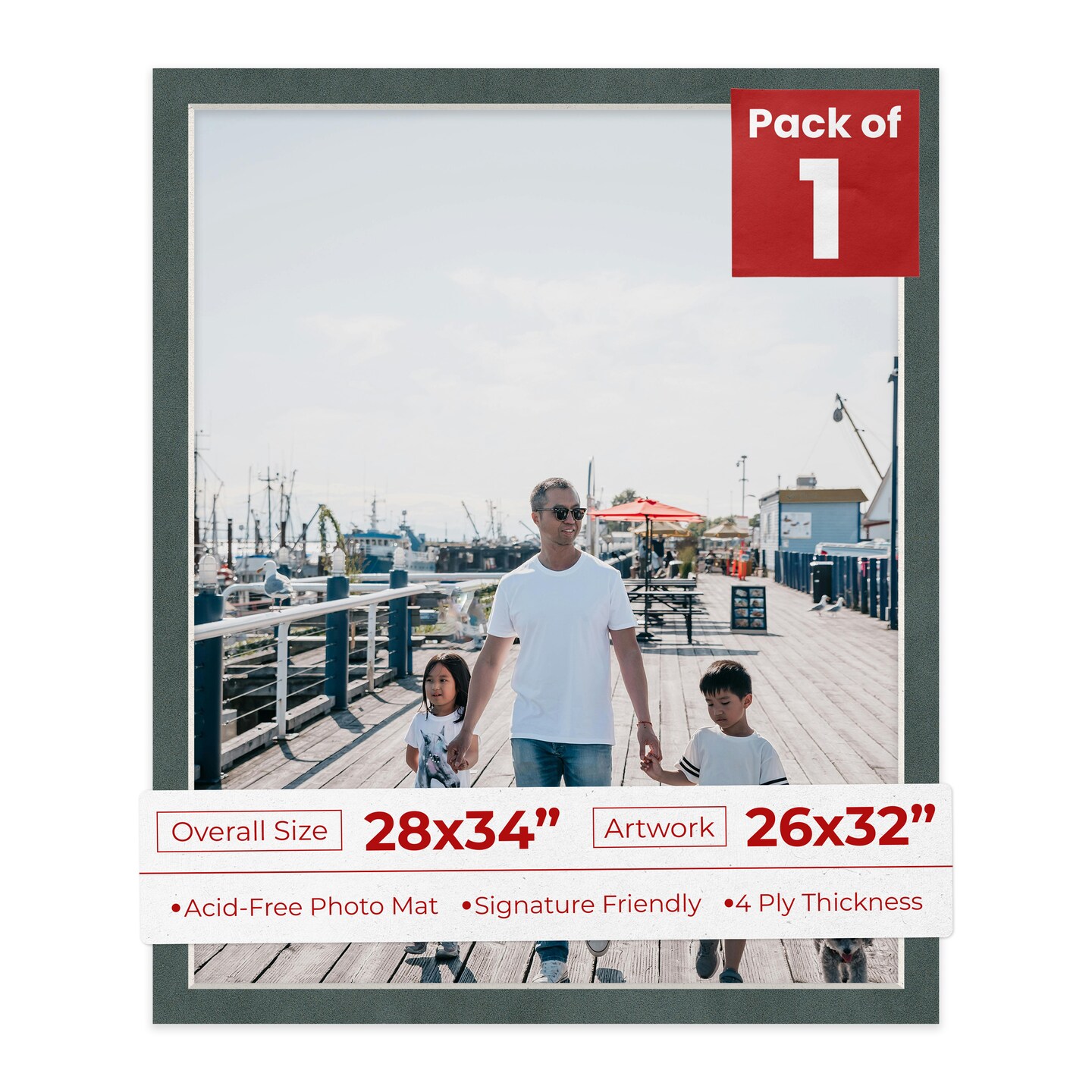 Dark Grey Suede Mat Board for 28x34 Frames - Fits 26x32 Photos
