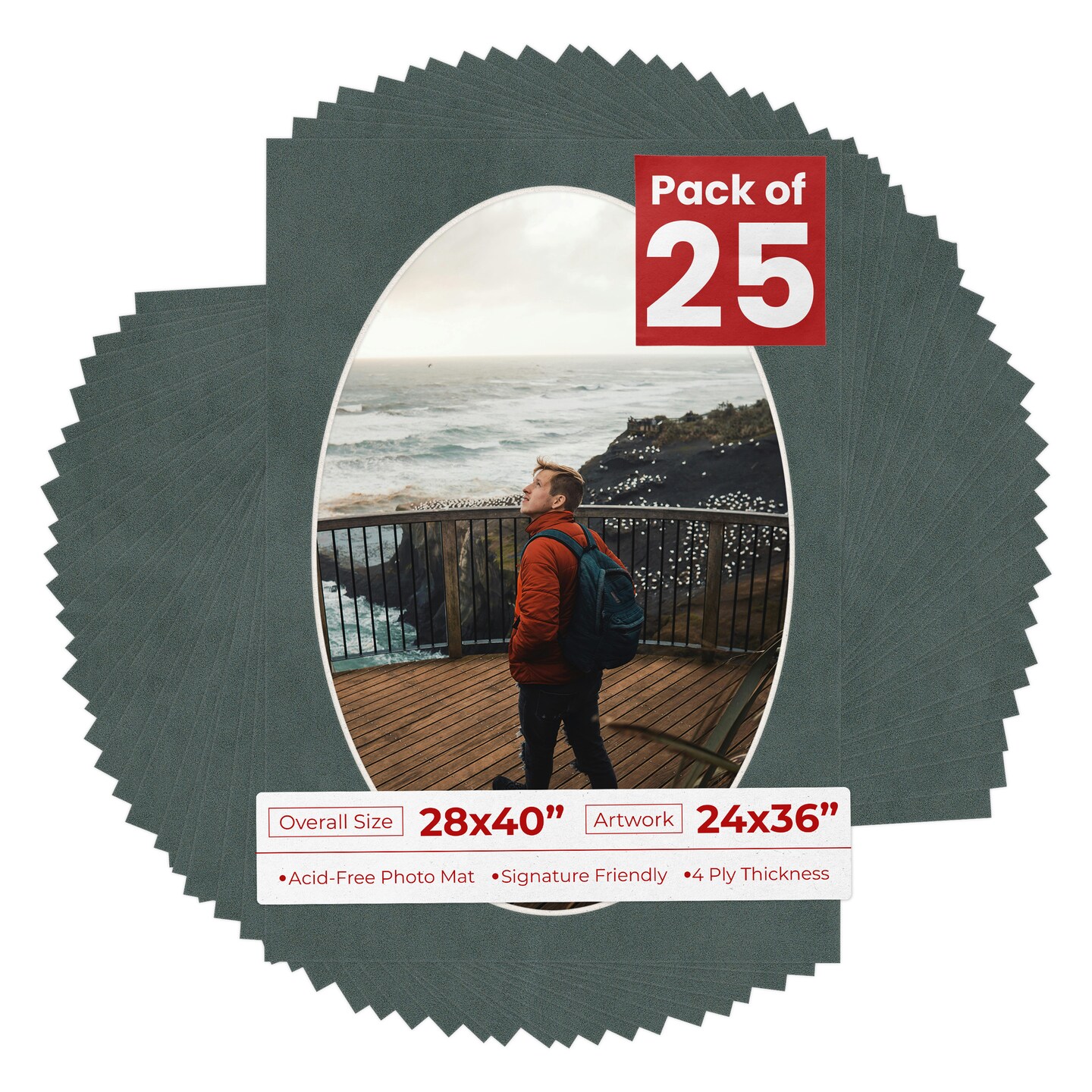 Dark Grey Suede Mat Board for 28x40 Frames - Oval Opening for 24x36 Photos