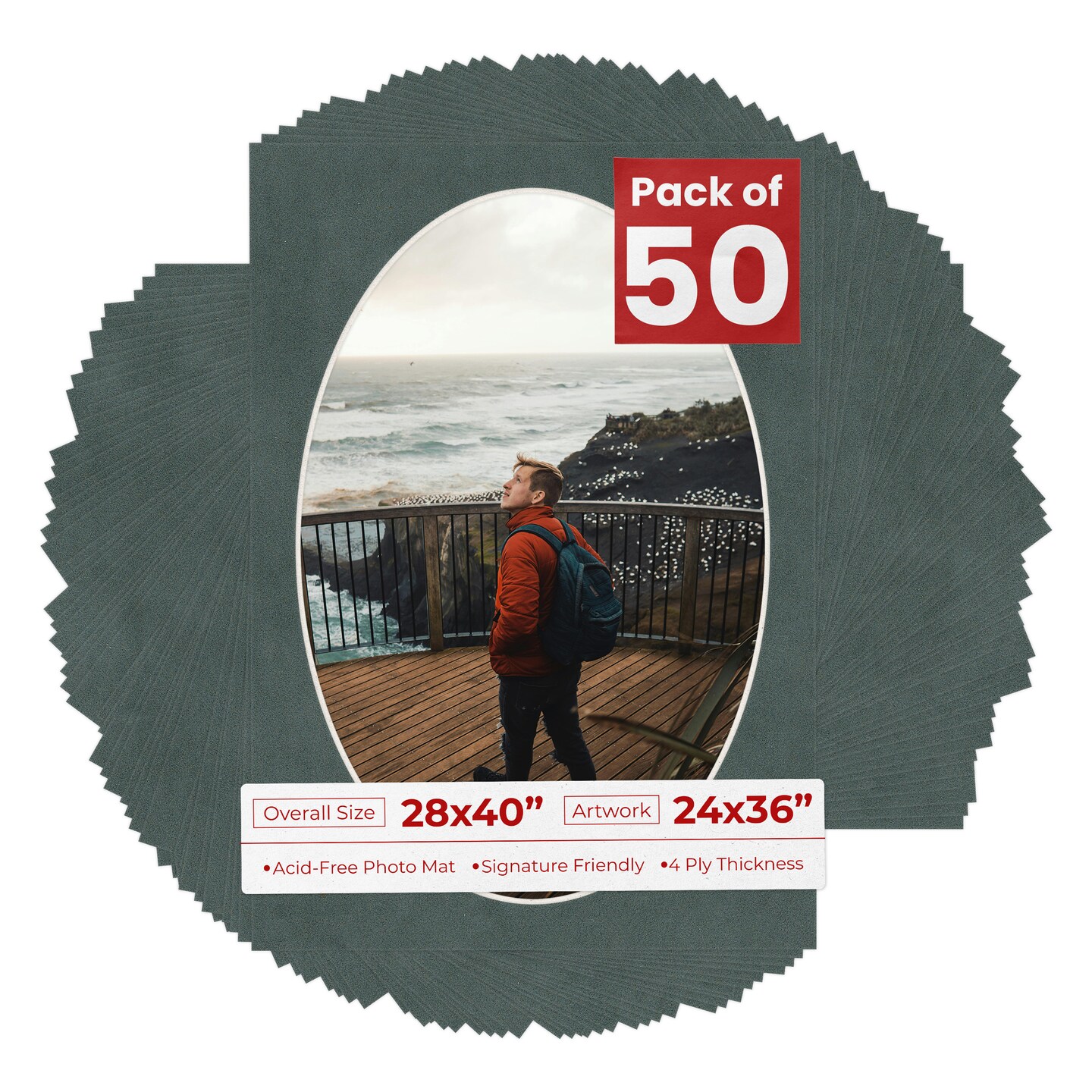 Dark Grey Suede Mat Board for 28x40 Frames - Oval Opening for 24x36 Photos