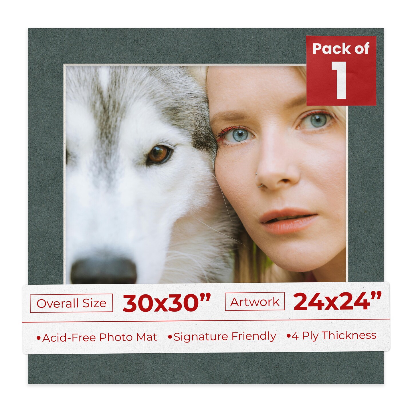 Dark Grey Suede Mat Board for 30x30 Frames - Fits 24x24 Photos