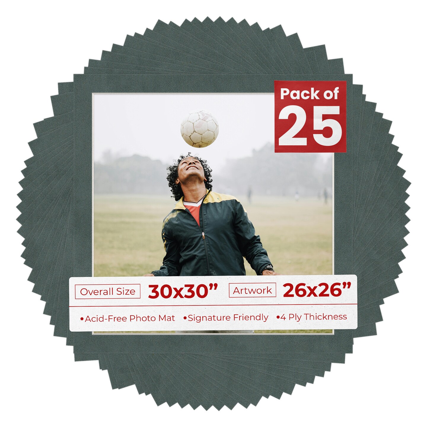 Dark Grey Suede Mat Board for 30x30 Frames - Fits 26x26 Photos