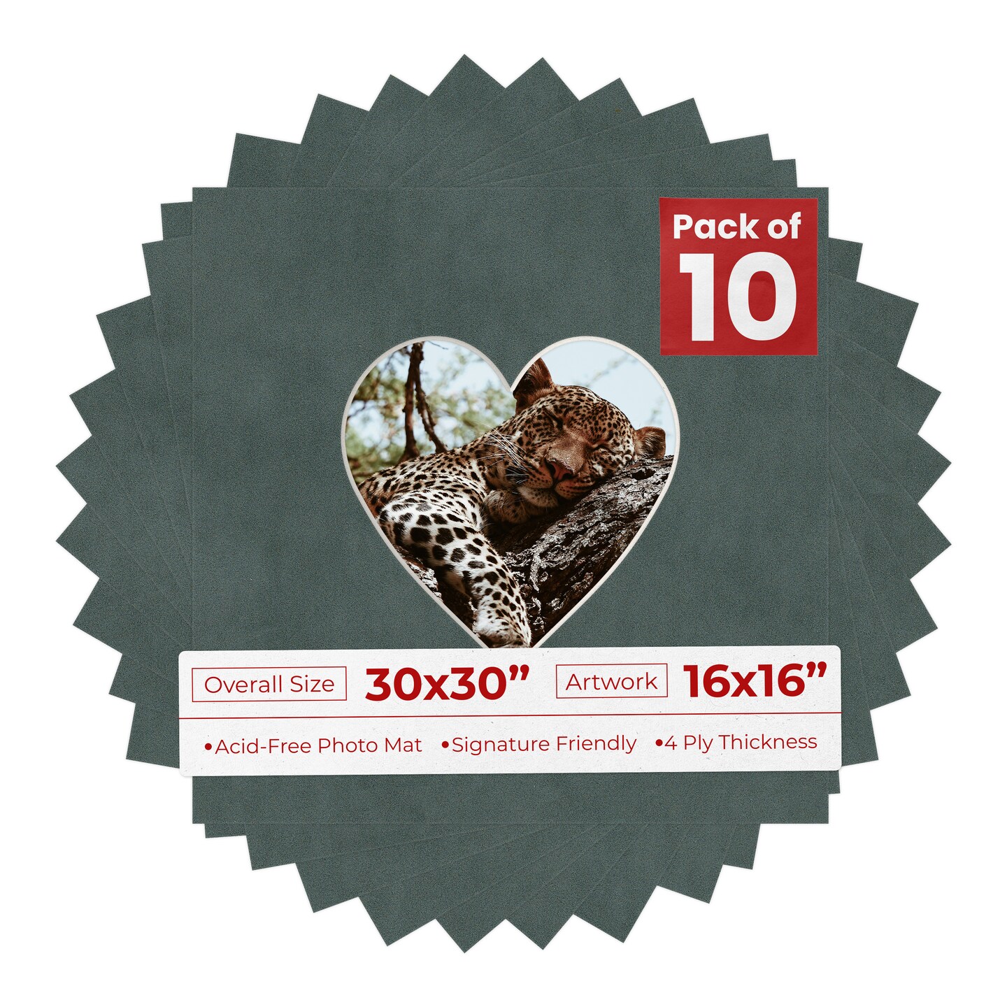 Dark Grey Suede Mat Board for 30x30 Frames - Heart Opening for 16x16 Photos
