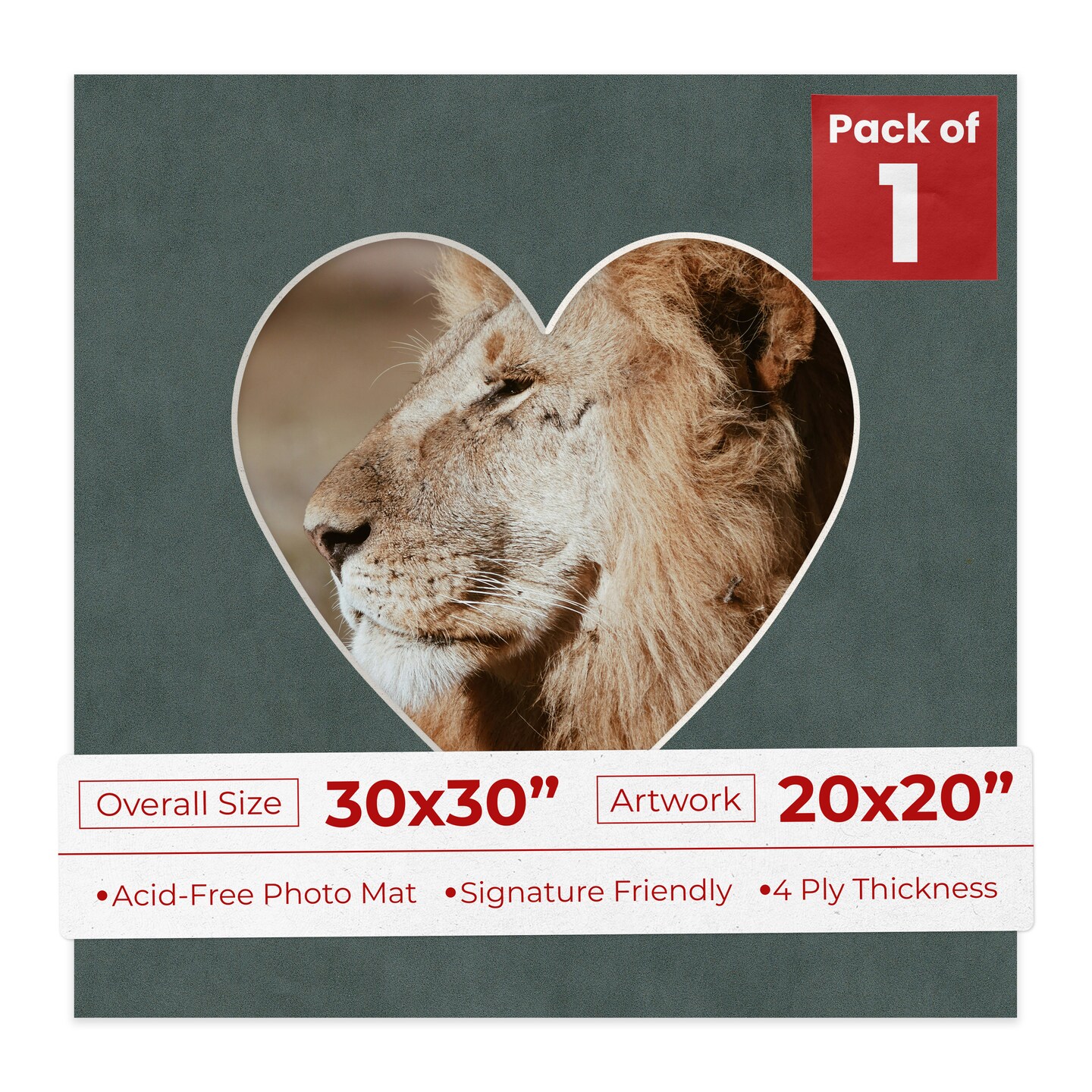 Dark Grey Suede Mat Board for 30x30 Frames - Heart Opening for 20x20 Photos