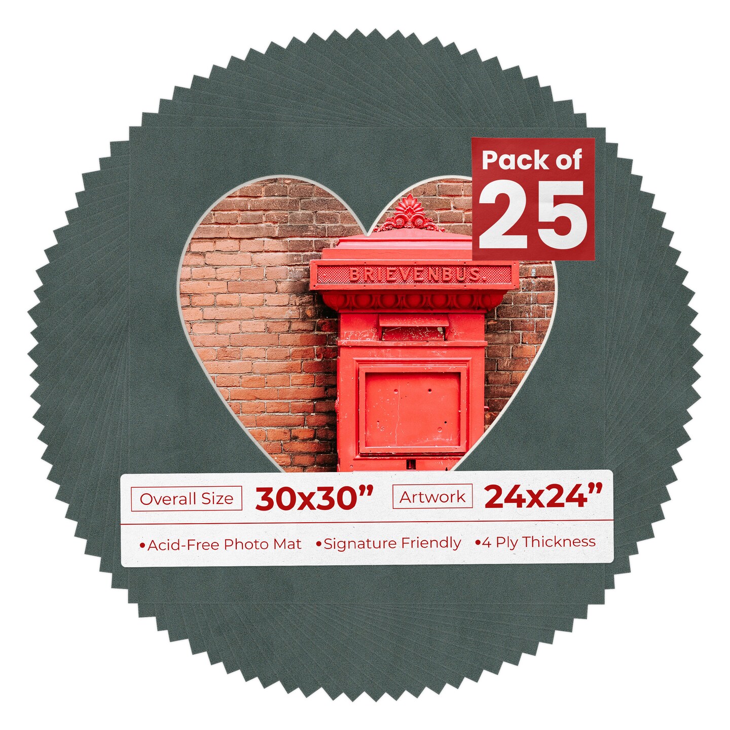 Dark Grey Suede Mat Board for 30x30 Frames - Heart Opening for 24x24 Photos