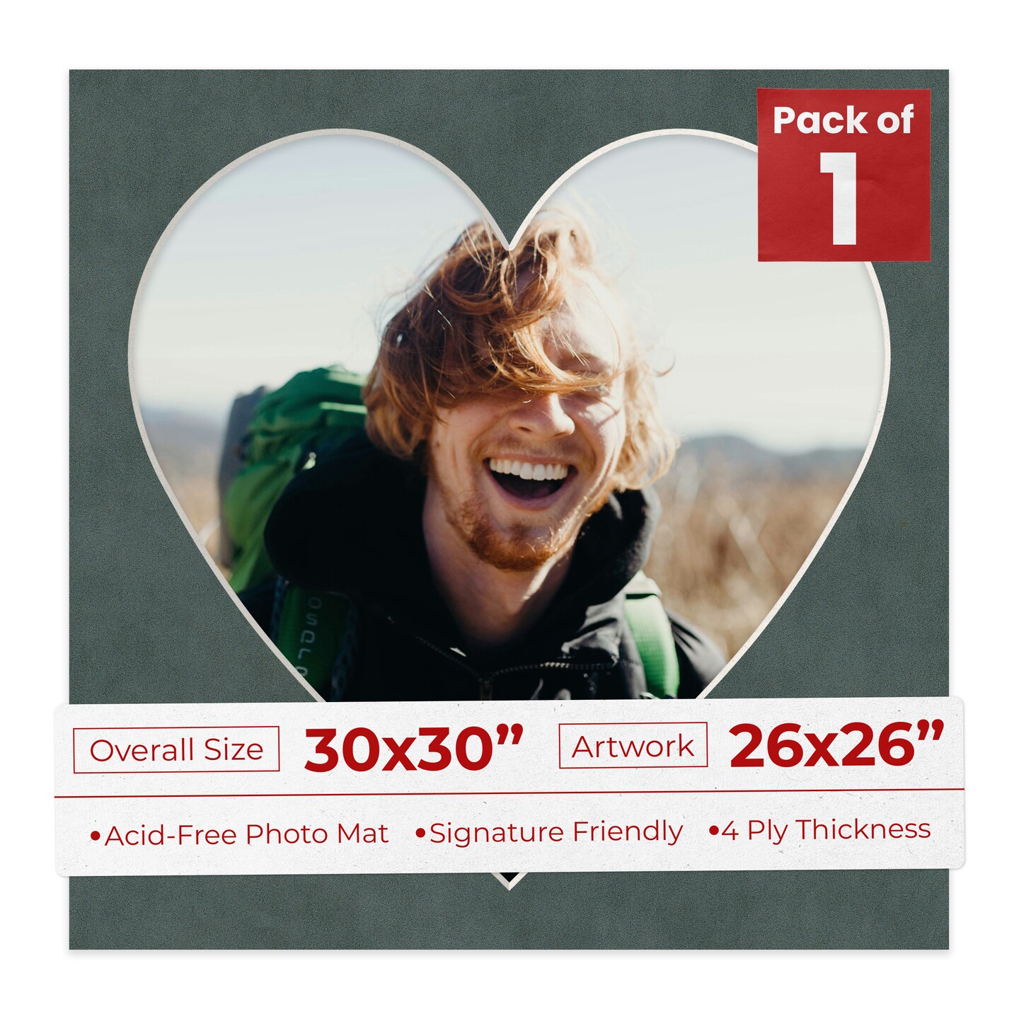 Dark Grey Suede Mat Board for 30x30 Frames - Heart Opening for 26x26 Photos
