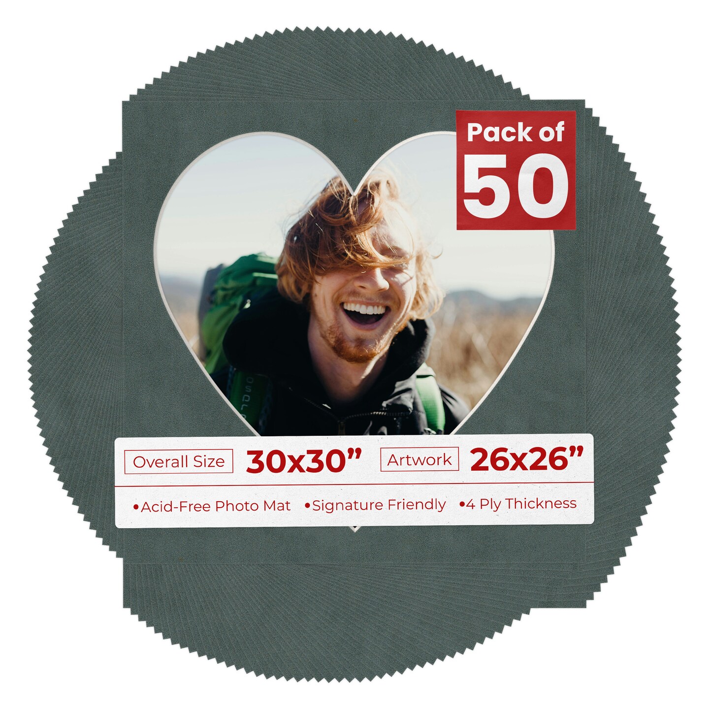 Dark Grey Suede Mat Board for 30x30 Frames - Heart Opening for 26x26 Photos