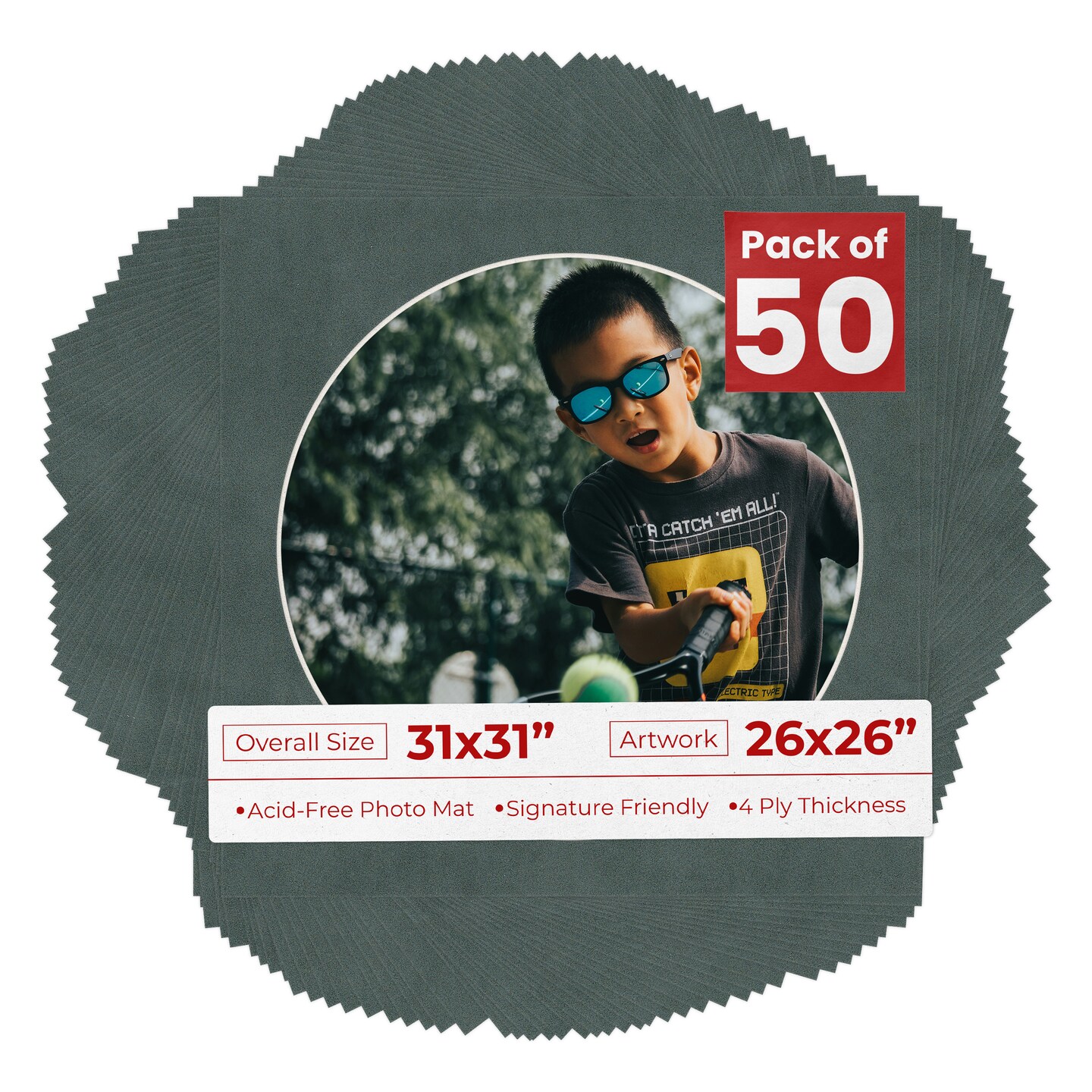 Dark Grey Suede Mat Board for 31x31 Frames - Circle Opening for 26x26 Photos