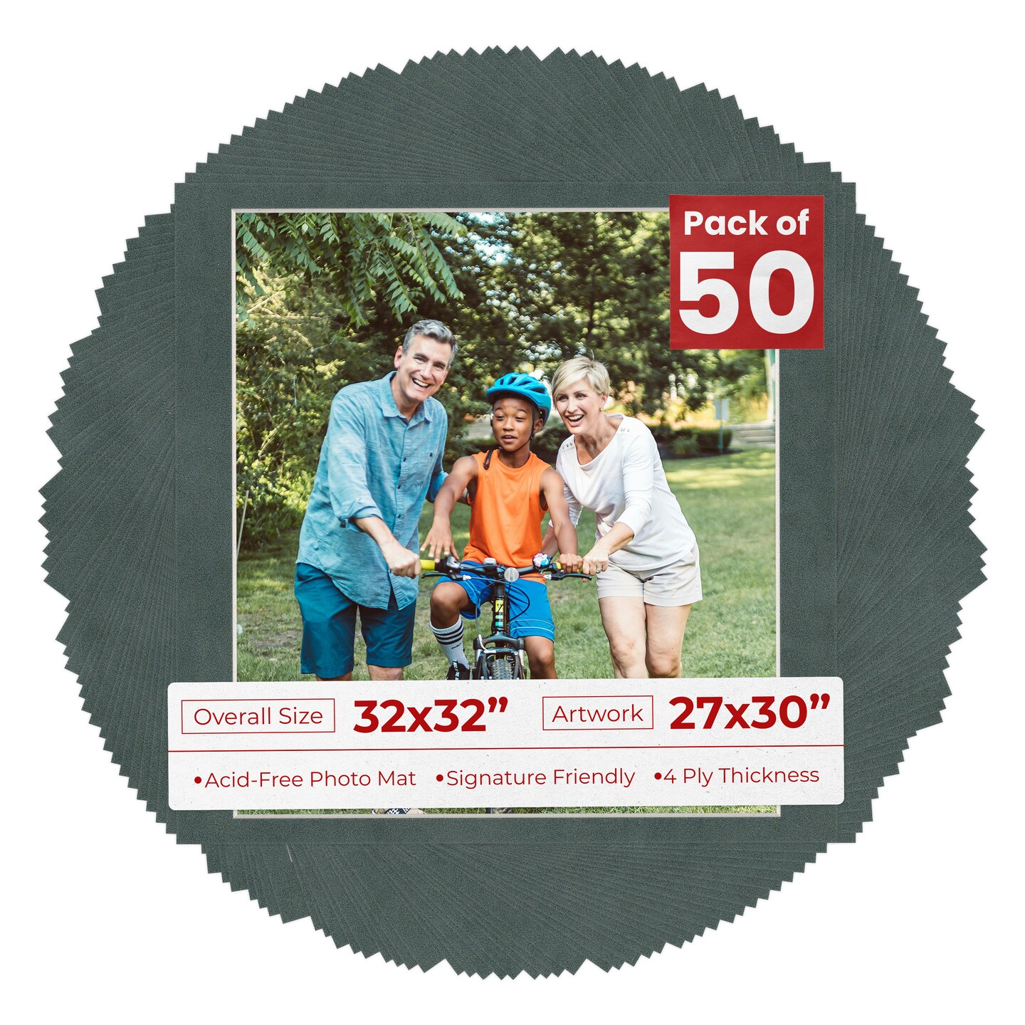 Dark Grey Suede Mat Board for 32x32 Frames - Fits 27x30 Photos