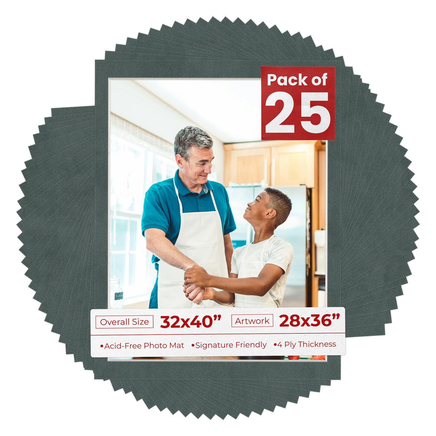 Dark Grey Suede Mat Board for 32x40 Frames - Fits 28x36 Photos