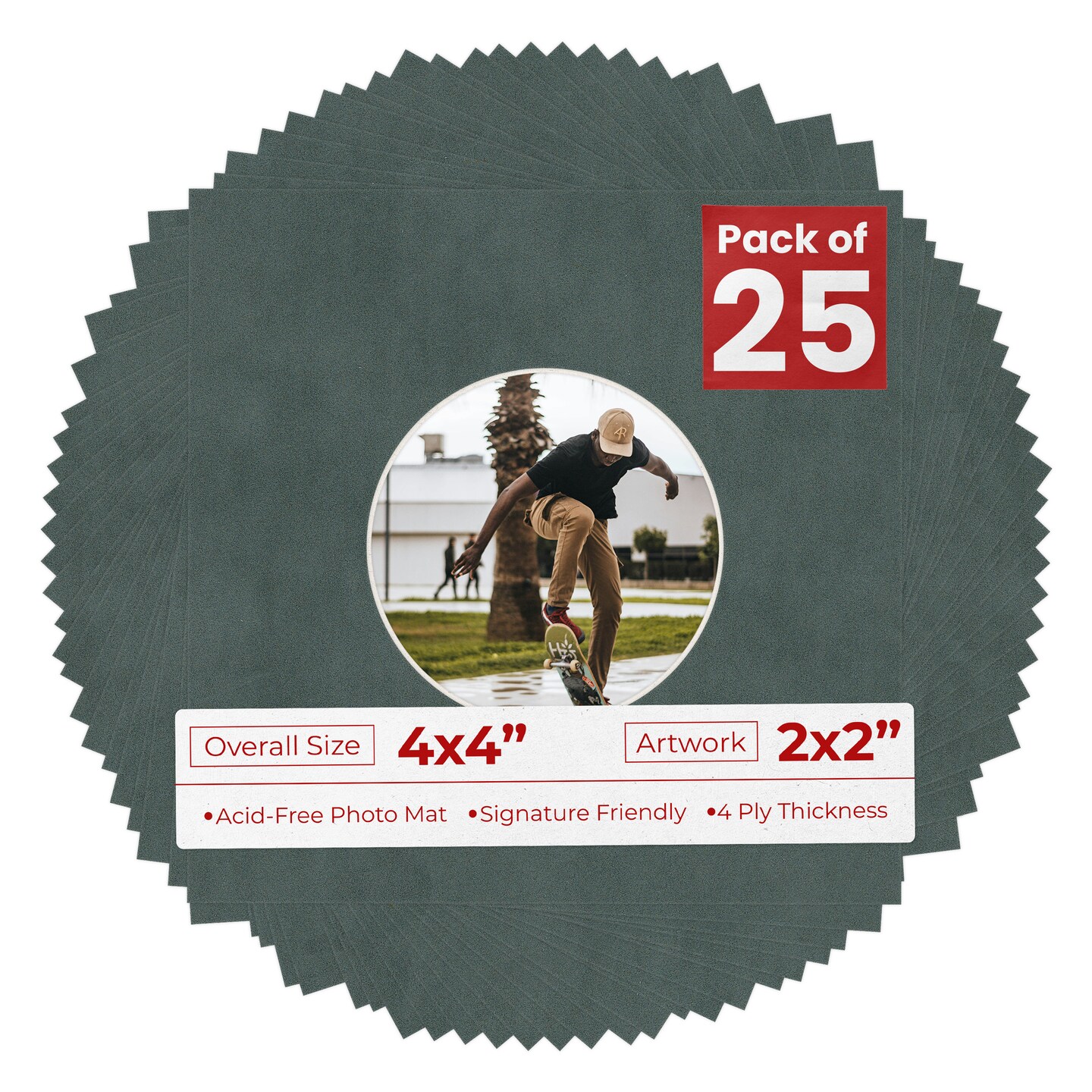 Dark Grey Suede Mat Board for 4x4 Inch Frames - Circle Opening for 2x2 Photos