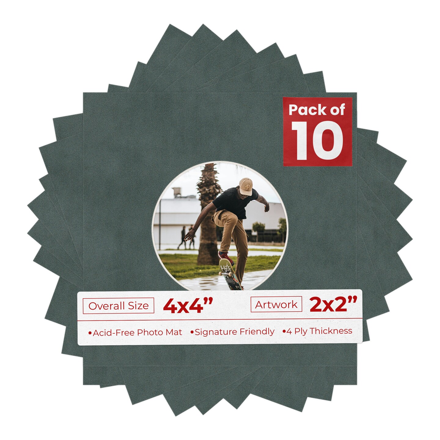 Dark Grey Suede Mat Board for 4x4 Inch Frames - Circle Opening for 2x2 Photos