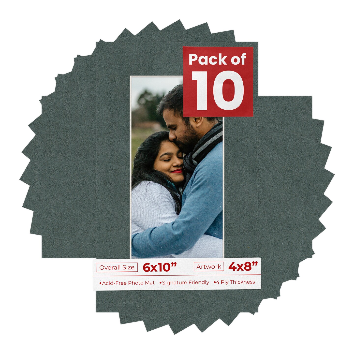 Dark Grey Suede Mat Board for 6x10 Frames - Fits 4x8 Photos