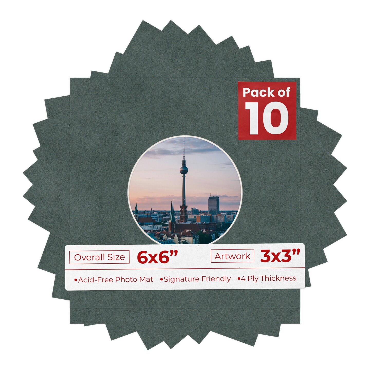Dark Grey Suede Mat Board for 6x6 Frames - Circle Opening for 3x3 Photos