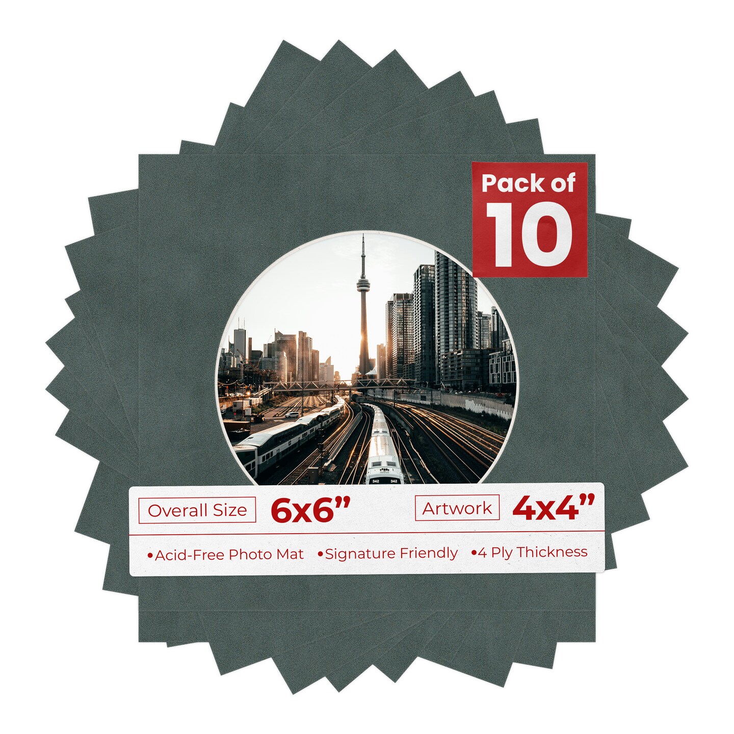 Dark Grey Suede Mat Board for 6x6 Frames - Circle Opening for 4x4 Photos