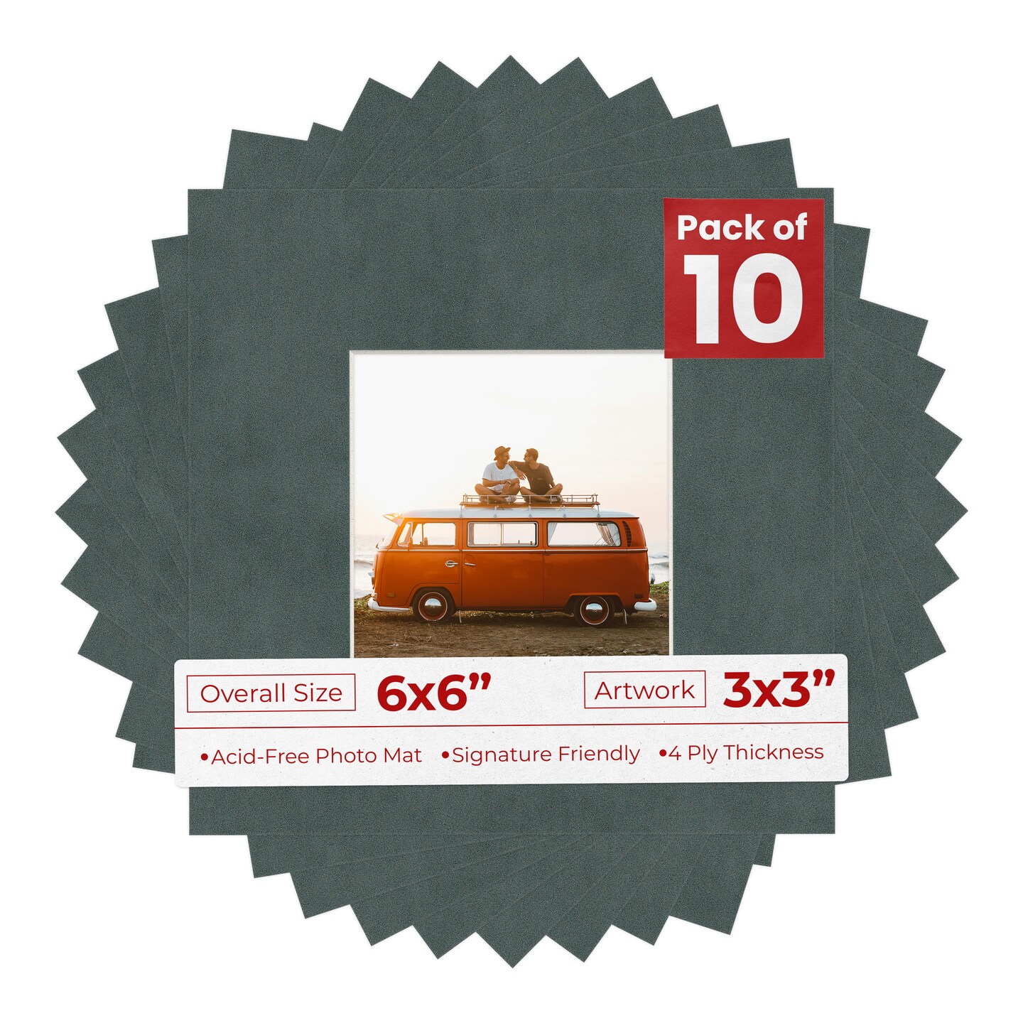 Dark Grey Suede Mat Board for 6x6 Frames - Fits 3x3 Photos