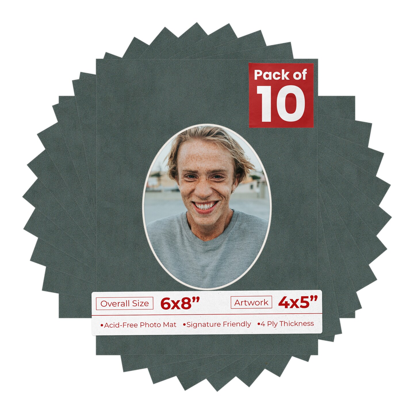Dark Grey Suede Mat Board for 6x8 Frames - Oval Opening for 4x5 Photos