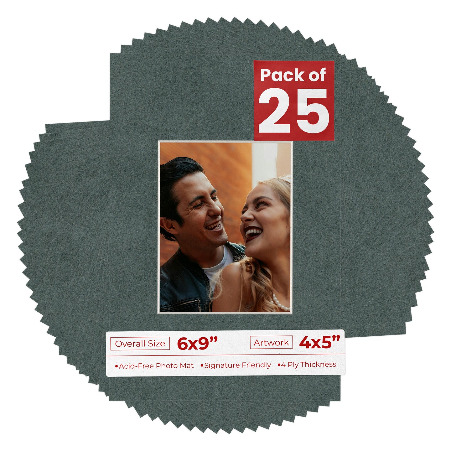 Dark Grey Suede Mat Board for 6x9 Frames - Fits 4x5 Photos