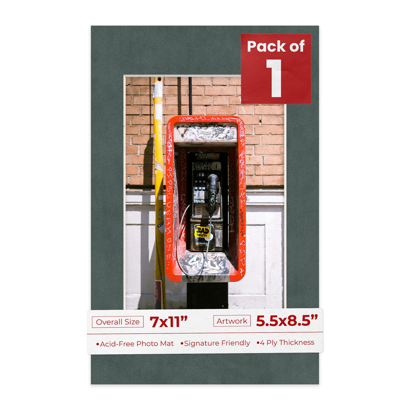 Dark Grey Suede Mat Board for 7x11 Frames - Fits 5.5x8.5 Photos