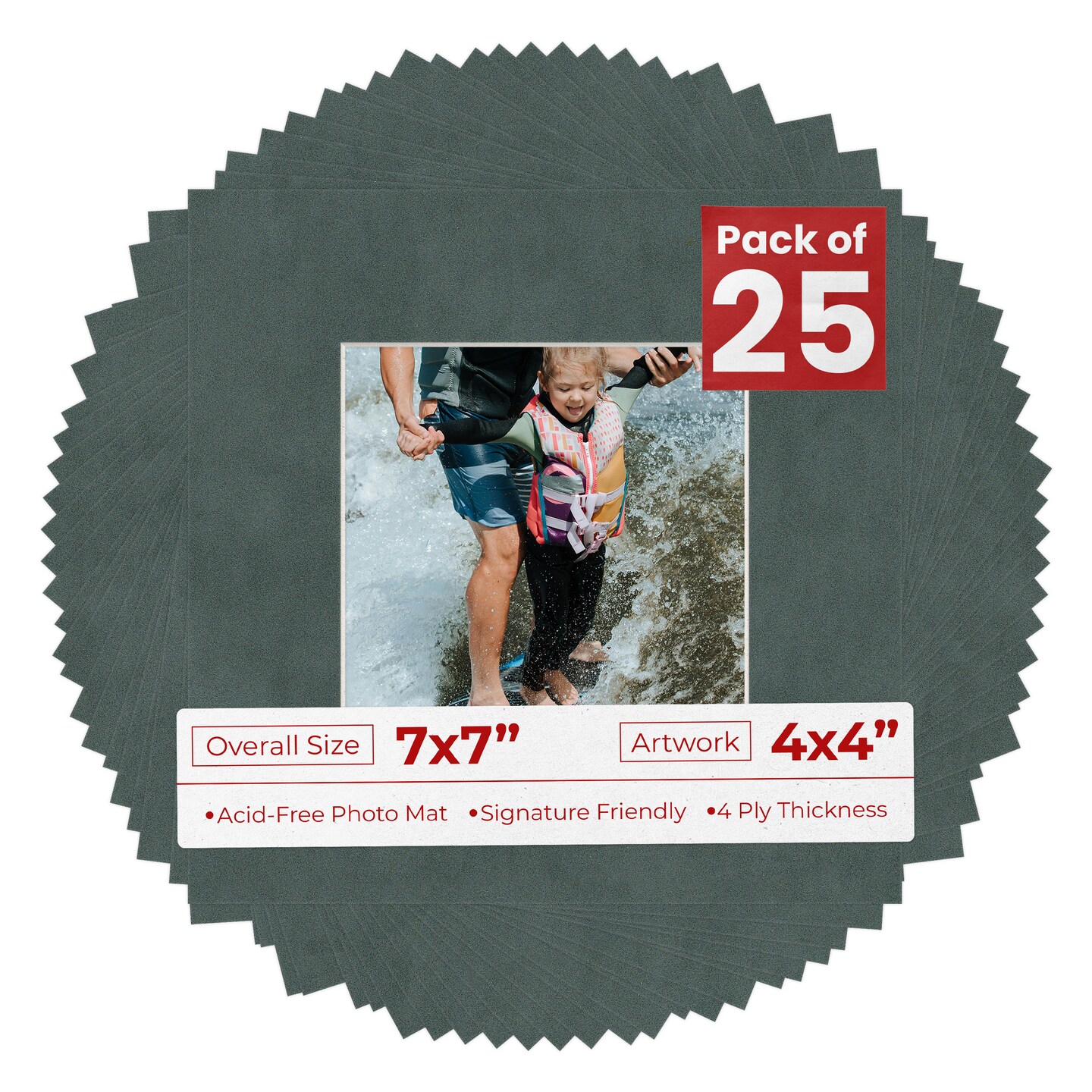 Dark Grey Suede Mat Board for 7x7 Frames - Fits 4x4 Photos