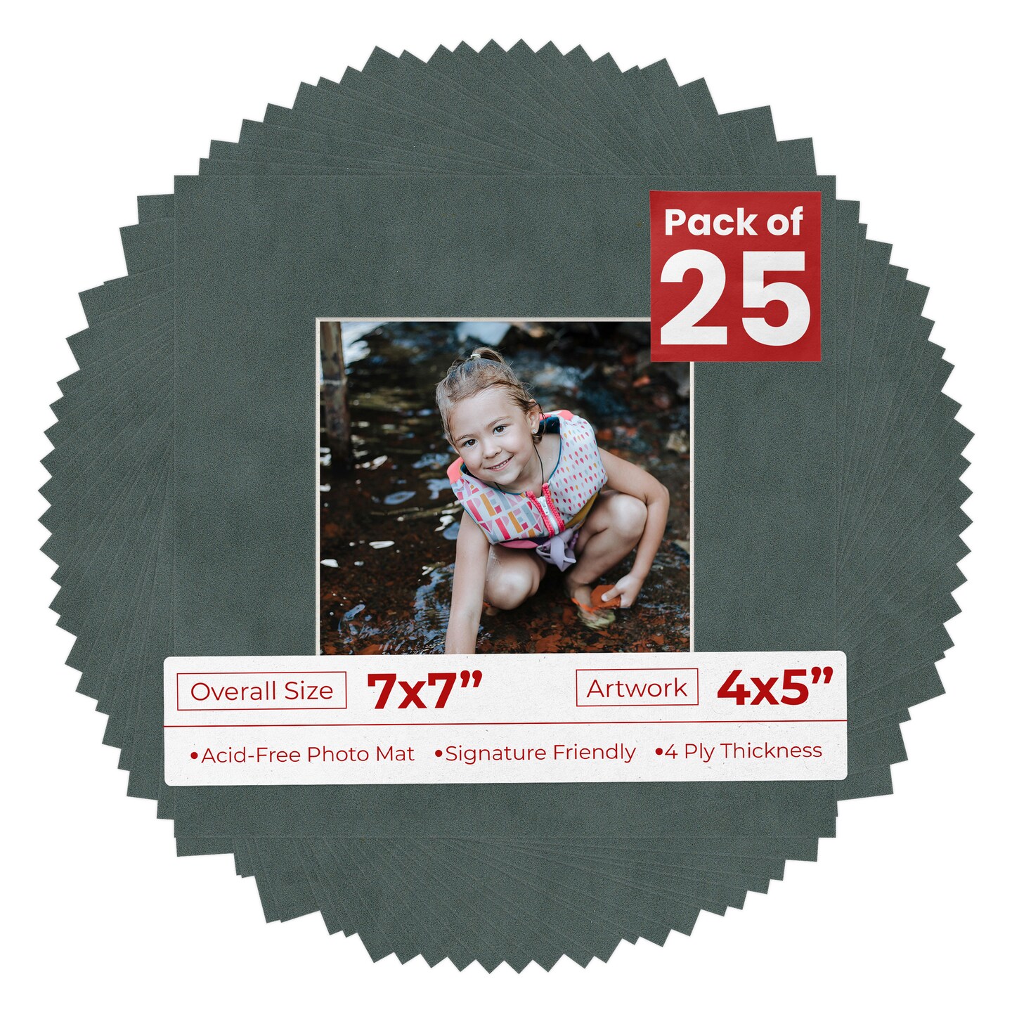 Dark Grey Suede Mat Board for 7x7 Frames - Fits 4x5 Photos