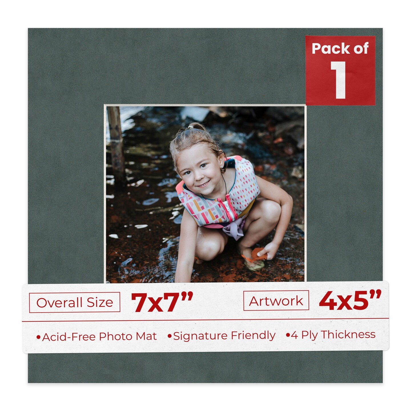 Dark Grey Suede Mat Board for 7x7 Frames - Fits 4x5 Photos