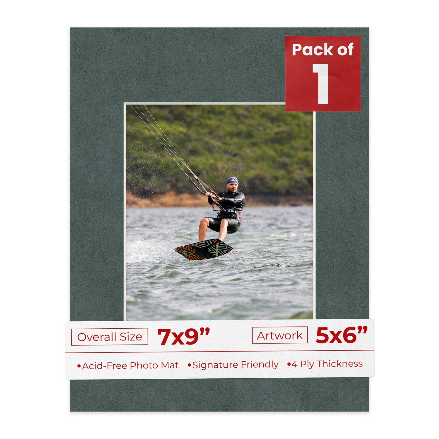 Dark Grey Suede Mat Board for 7x9 Frames - Fits 5x6 Photos