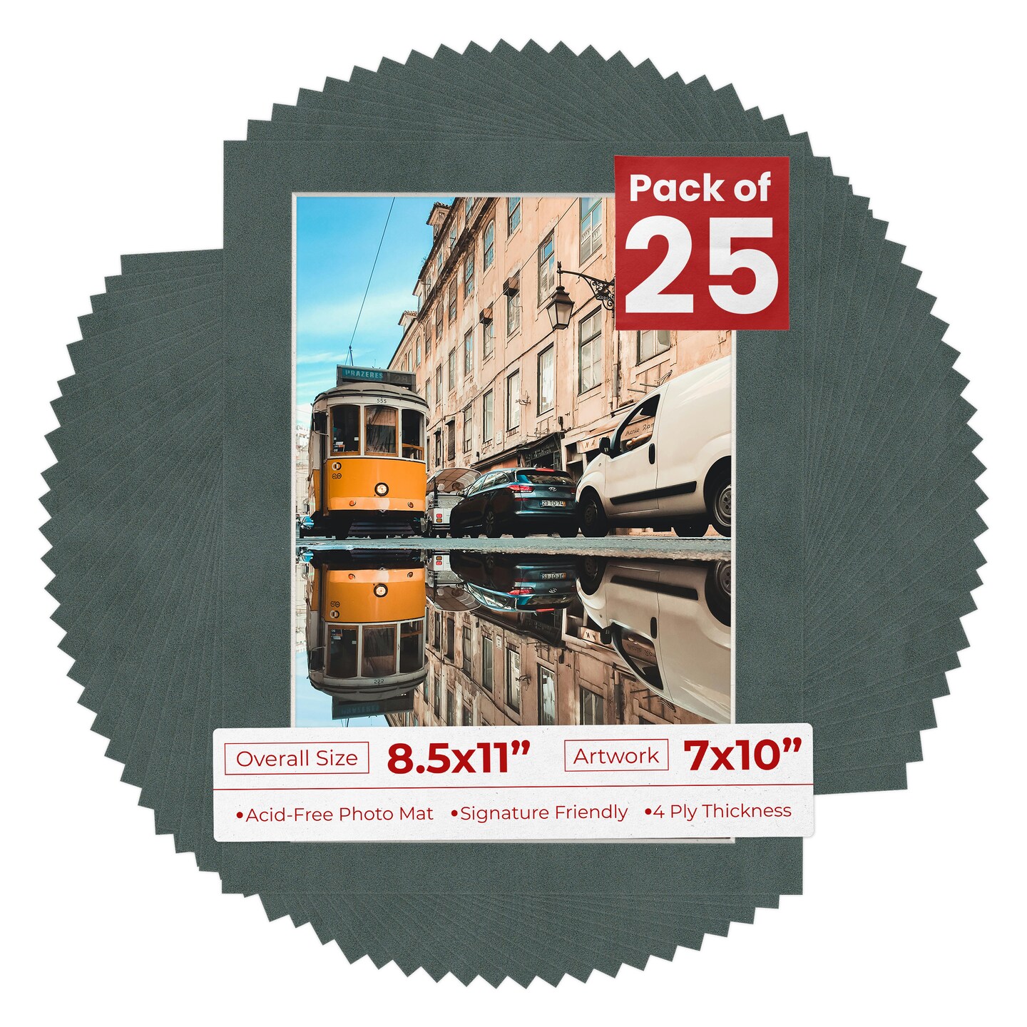 Dark Grey Suede Mat Board for 8.5x11 Frames - Fits 7x10 Photos