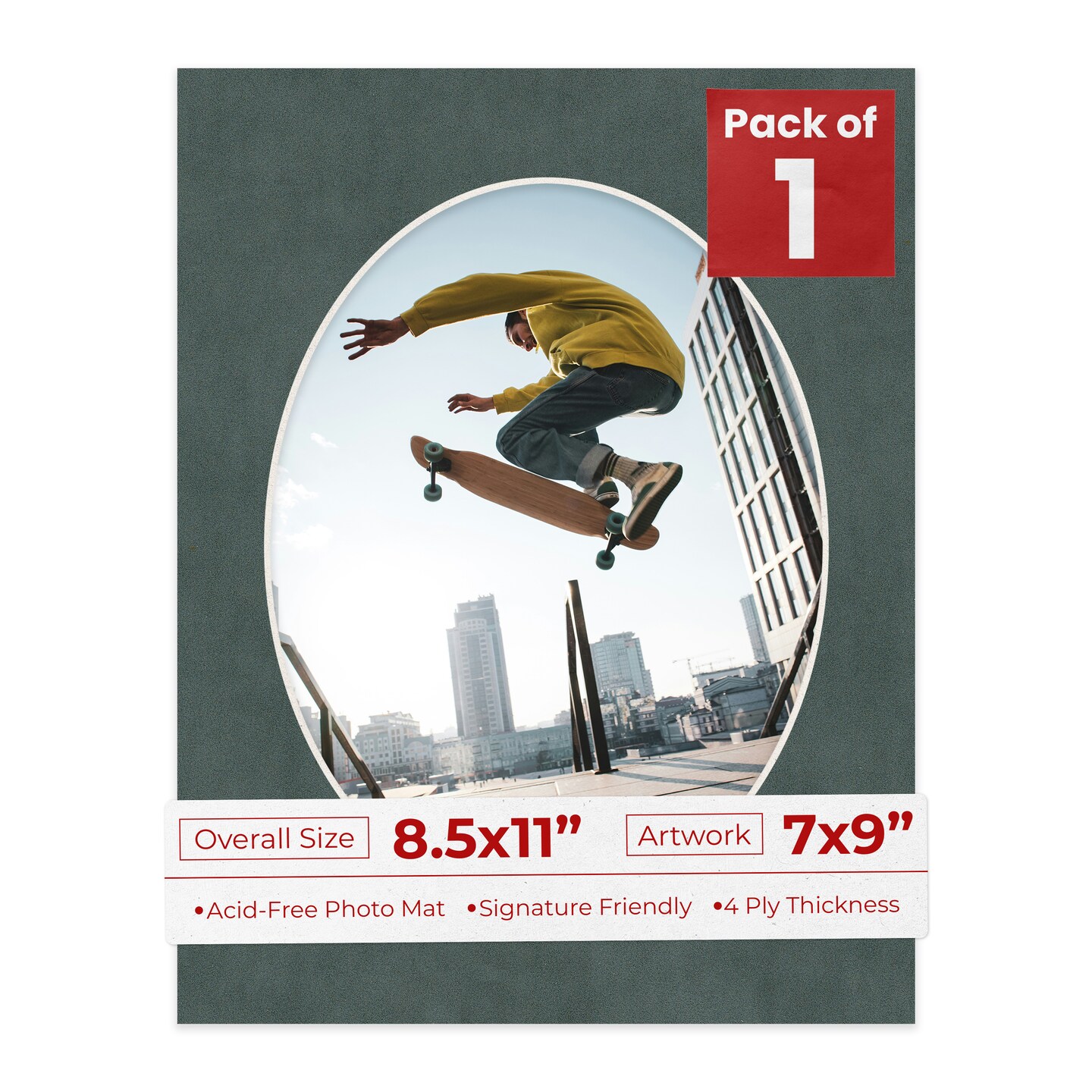 Dark Grey Suede Mat Board for 8.5x11 Frames - Oval Opening for 7x9 Photos