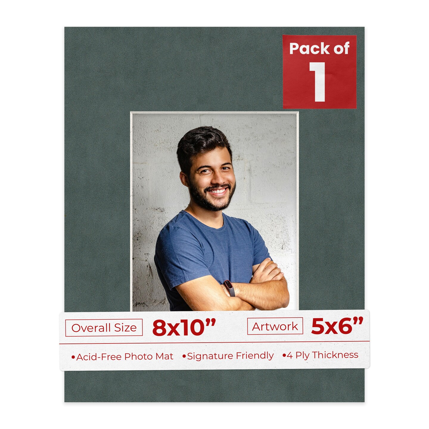 Dark Grey Suede Mat Board for 8x10 Frames - Fits 5x6 Photos
