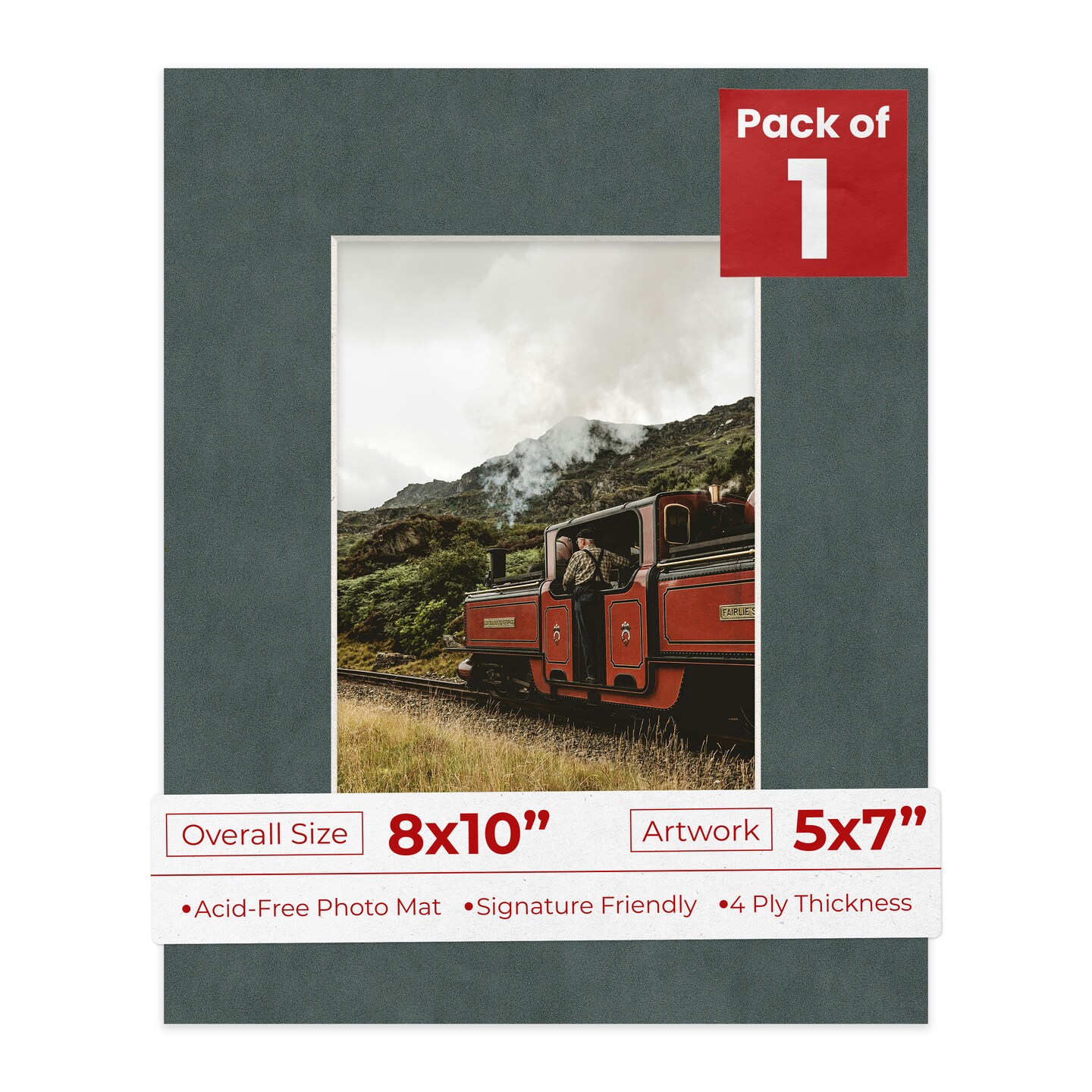 Dark Grey Suede Mat Board for 8x10 Frames - Fits 5x7 Photos