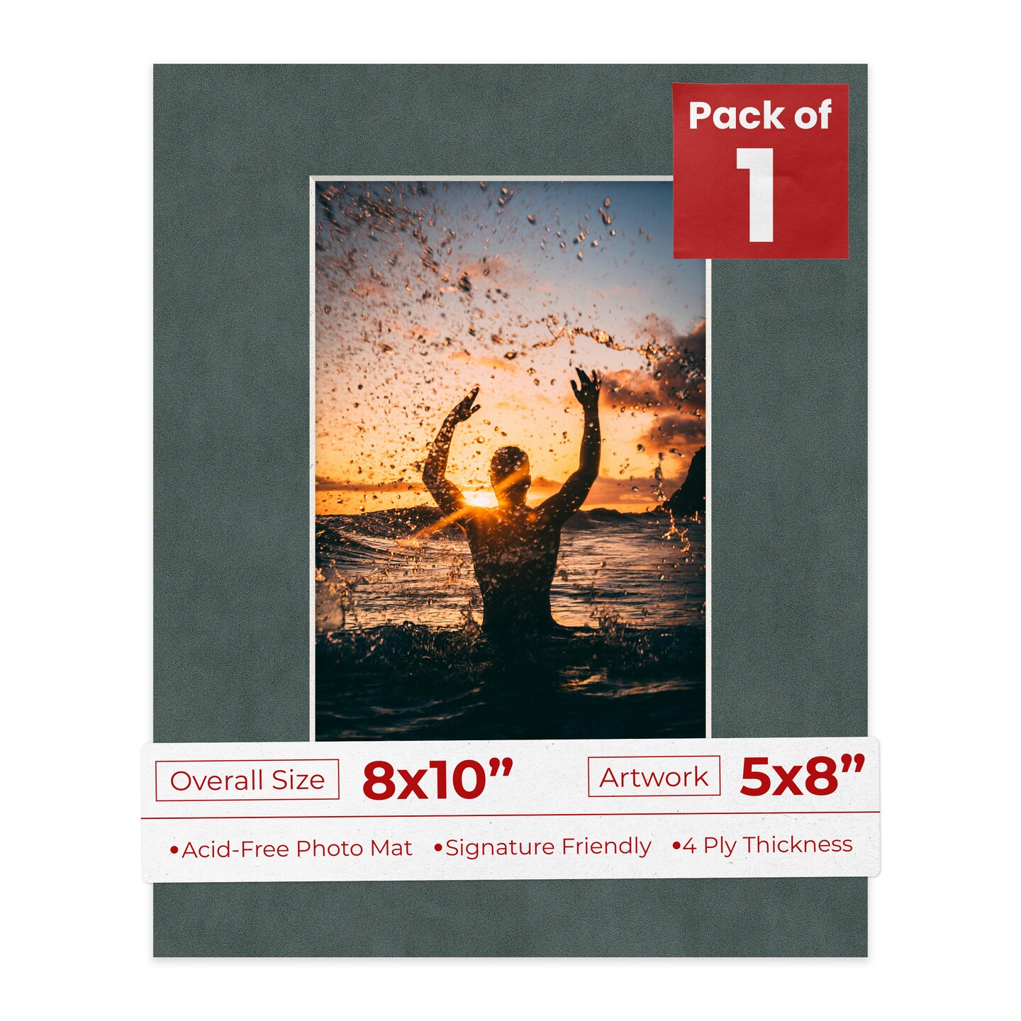 Dark Grey Suede Mat Board for 8x10 Frames - Fits 5x8 Photos