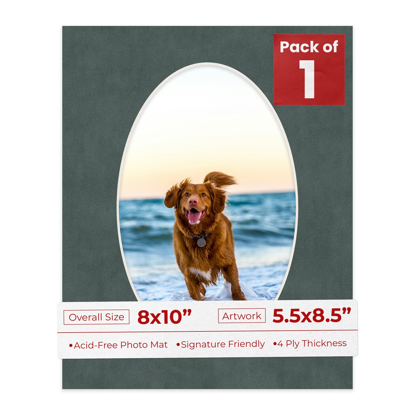 Dark Grey Suede Mat Board for 8x10 Frames - Oval Opening for 5.5x8.5 Photos
