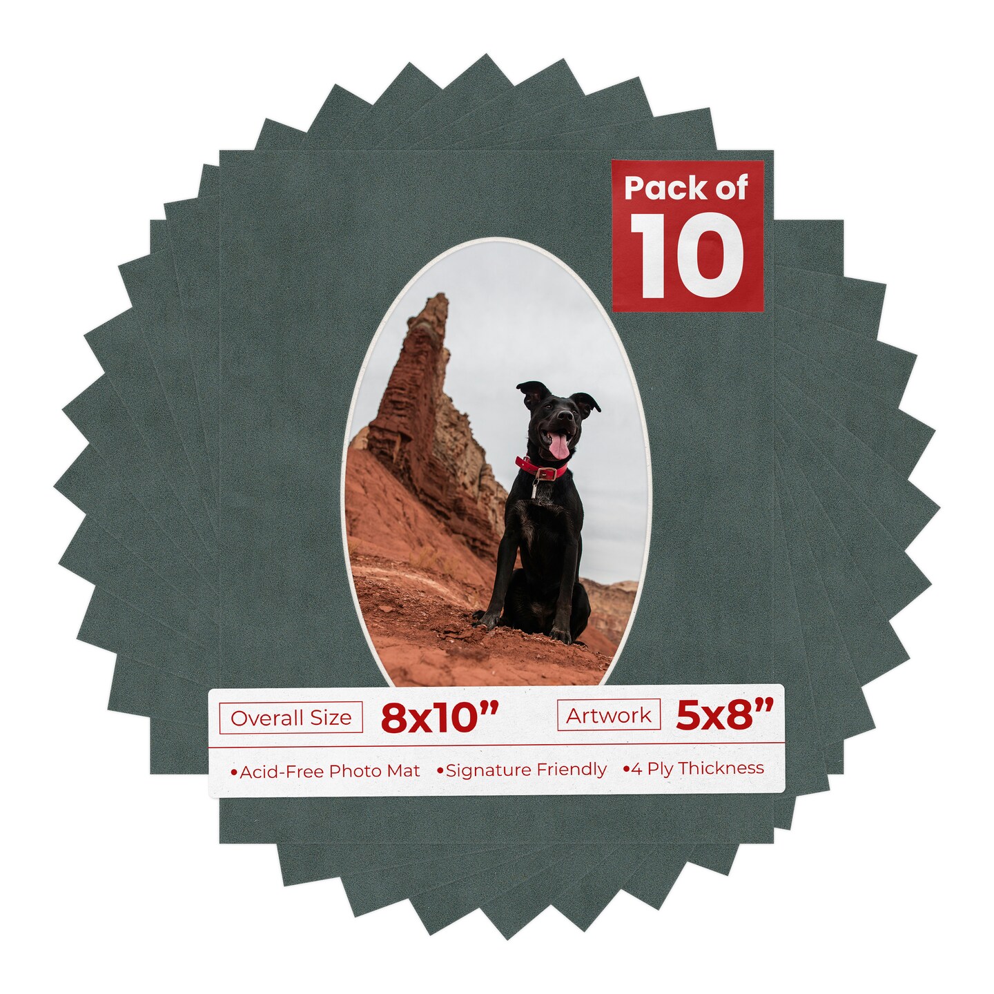 Dark Grey Suede Mat Board for 8x10 Frames - Oval Opening for 5x8 Photos