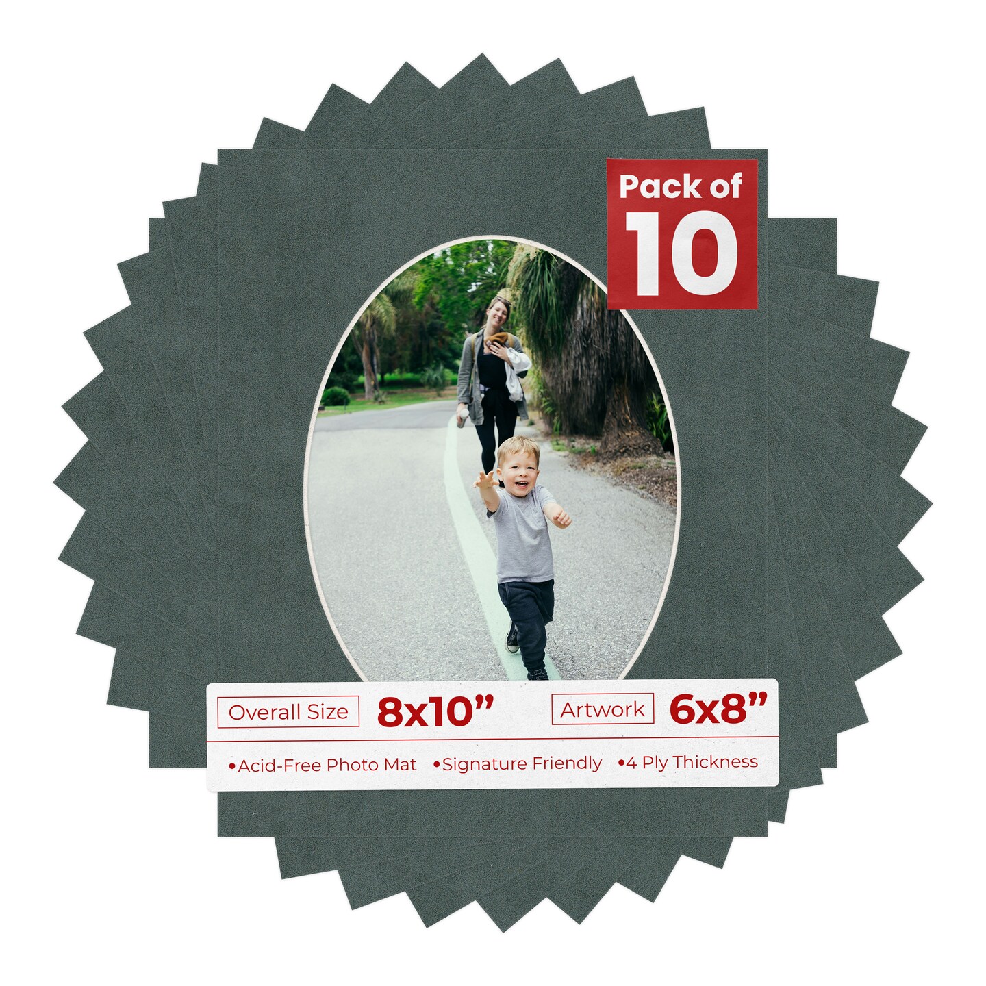 Dark Grey Suede Mat Board for 8x10 Frames - Oval Opening for 6x8 Photos