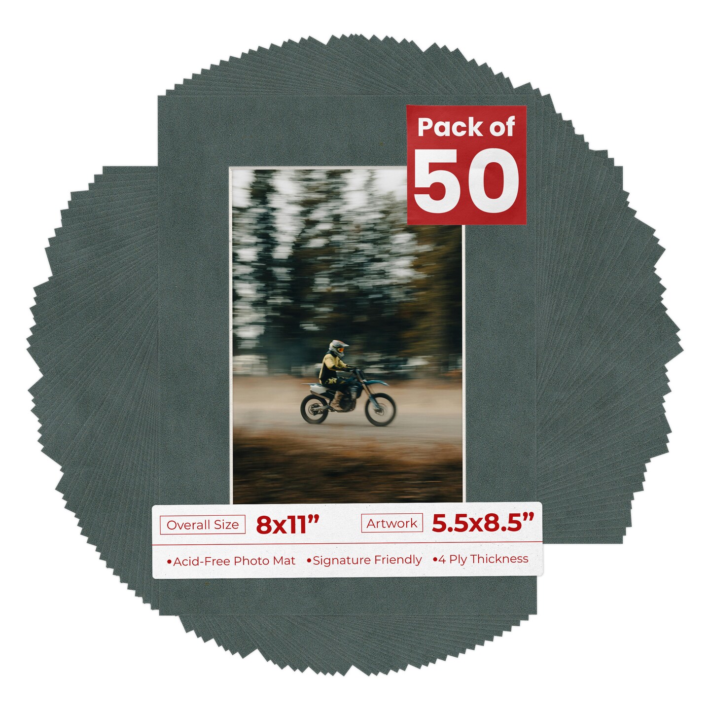 Dark Grey Suede Mat Board for 8x11 Frames - Fits 5.5x8.5 Photos