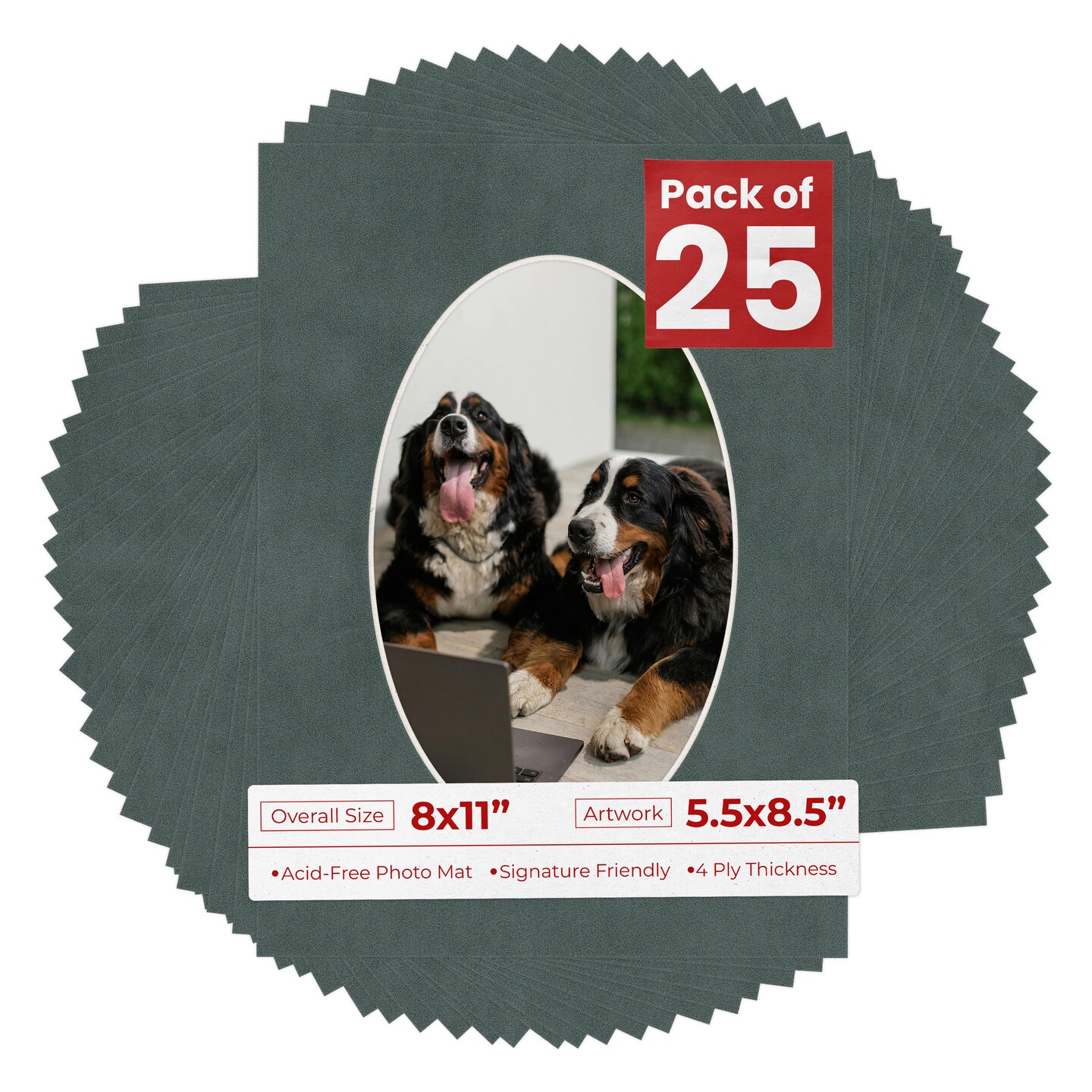 Dark Grey Suede Mat Board for 8x11 Frames - Oval Opening for 5.5x8.5 Photos