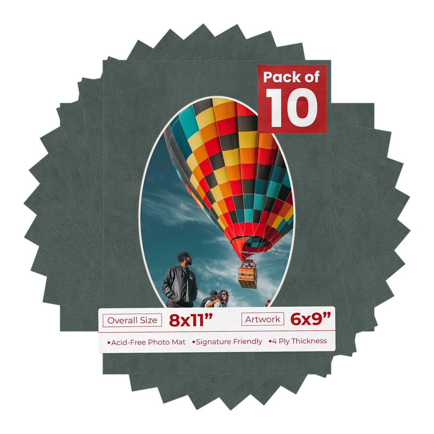 Dark Grey Suede Mat Board for 8x11 Frames - Oval Opening for 6x9 Photos