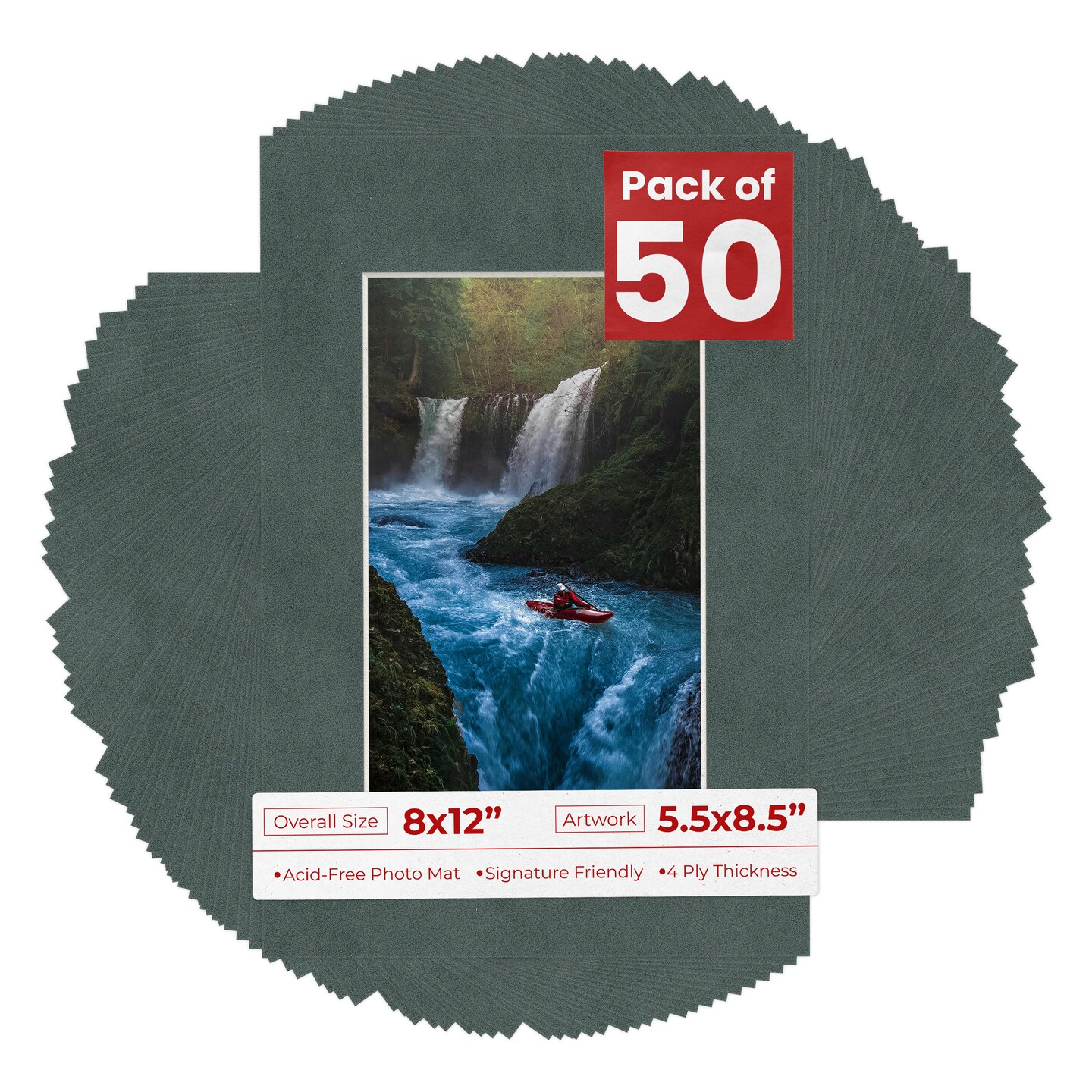 Dark Grey Suede Mat Board for 8x12 Frames - Fits 5.5x8.5 Photos