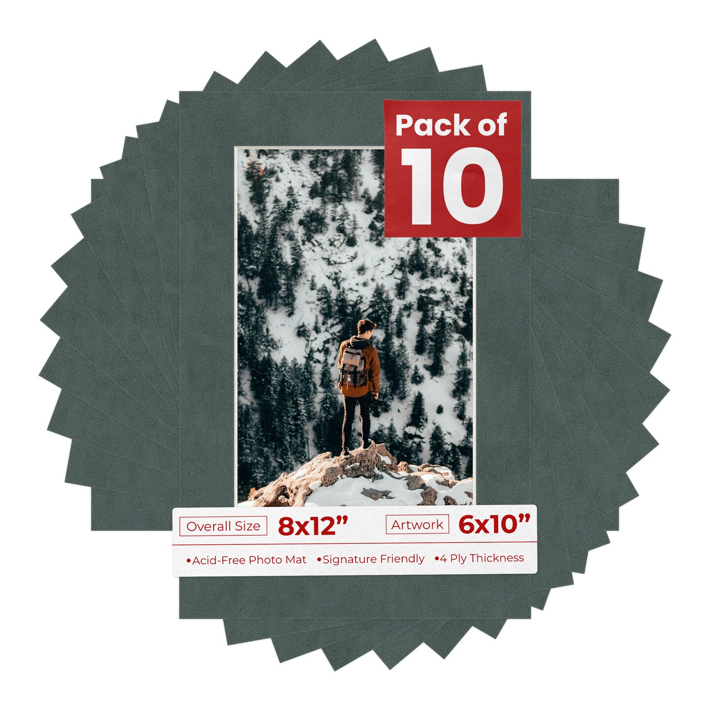 Dark Grey Suede Mat Board for 8x12 Frames - Fits 6x10 Photos