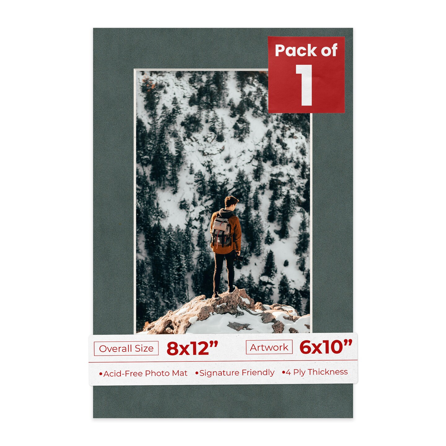 Dark Grey Suede Mat Board for 8x12 Frames - Fits 6x10 Photos