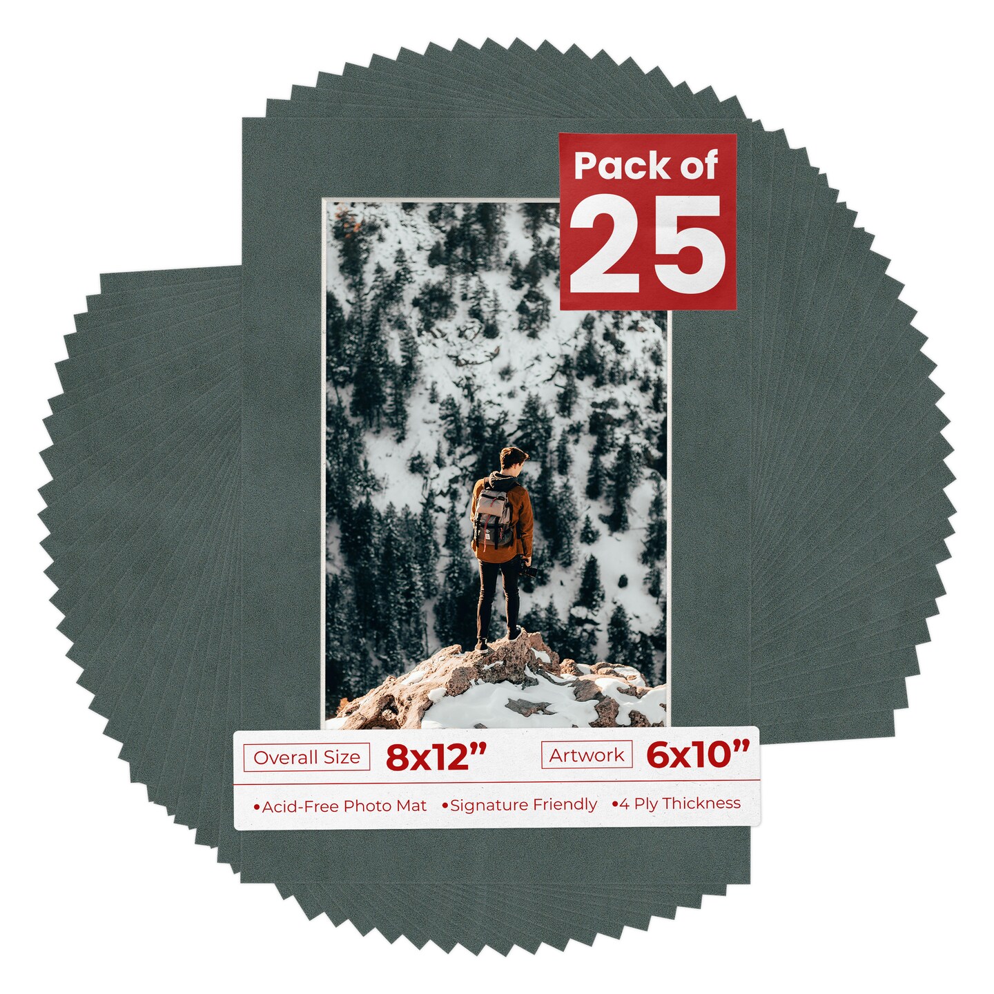 Dark Grey Suede Mat Board for 8x12 Frames - Fits 6x10 Photos
