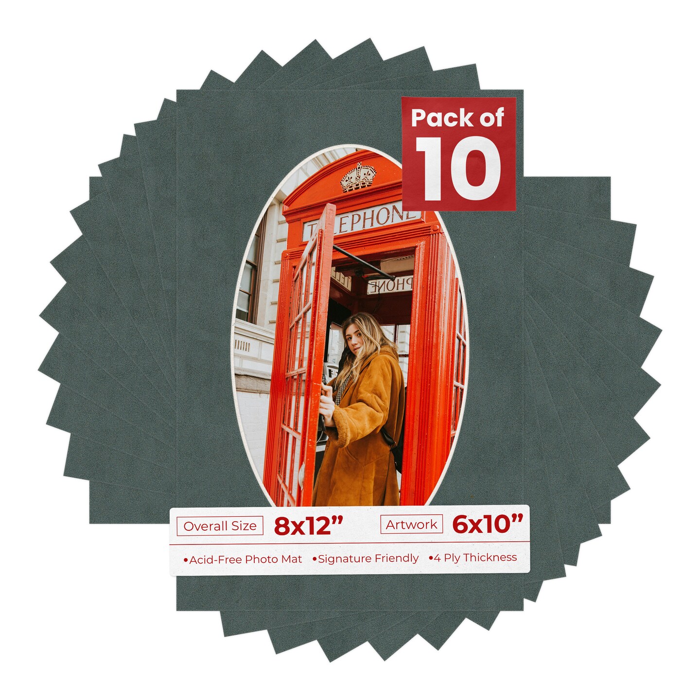 Dark Grey Suede Mat Board for 8x12 Frames - Oval Opening for 6x10 Photos