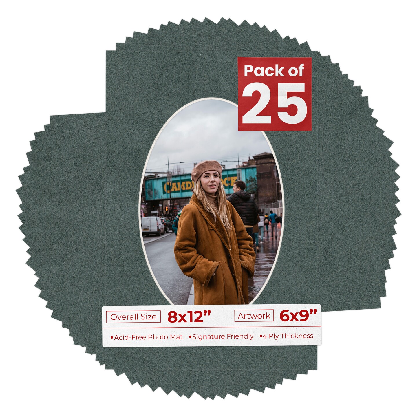 Dark Grey Suede Mat Board for 8x12 Frames - Oval Opening for 6x9 Photos