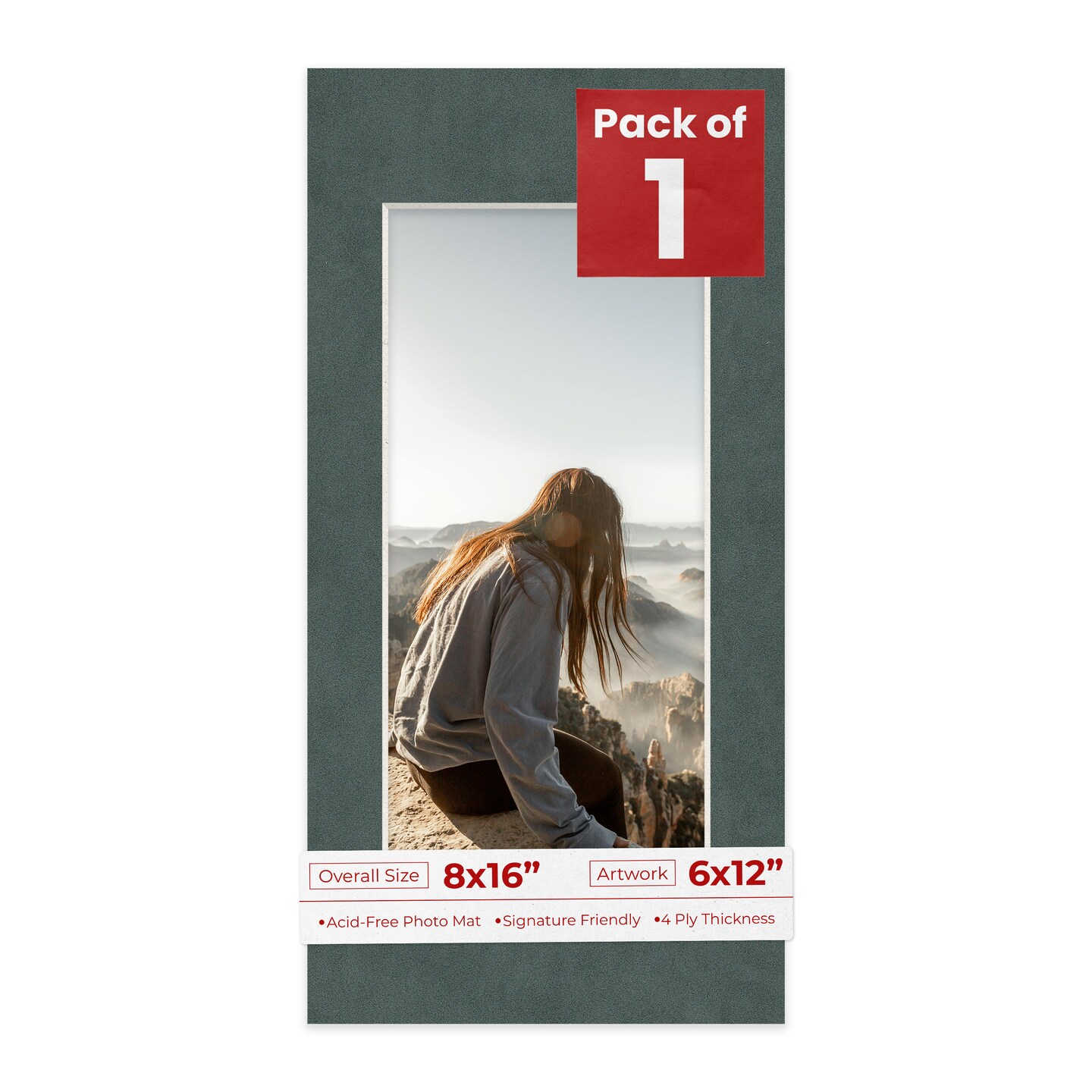 Dark Grey Suede Mat Board for 8x16 Frames - Fits 6x12 Photos