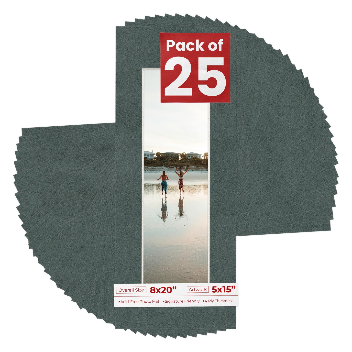 Dark Grey Suede Mat Board for 8x20 Frames - Fits 5x15 Photos