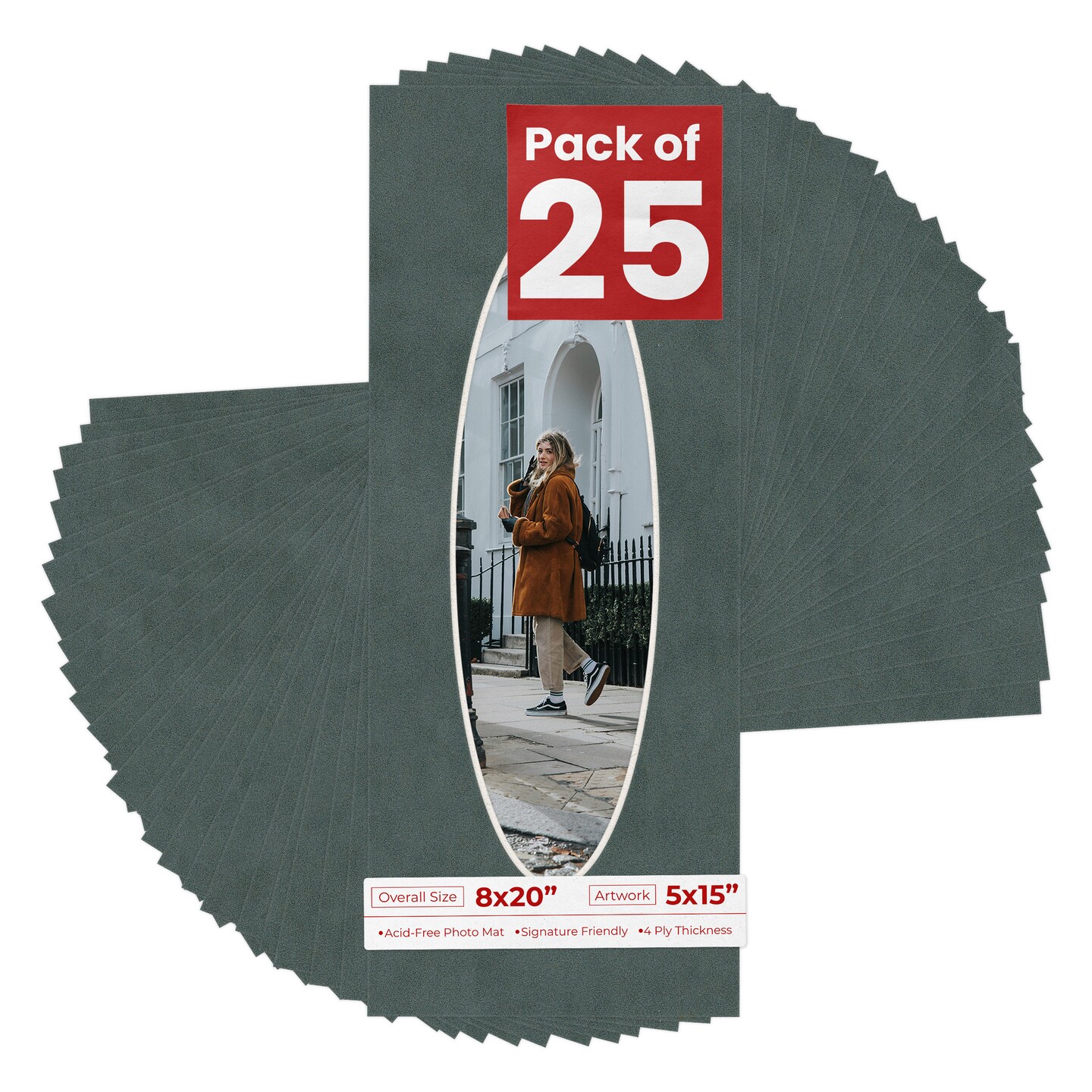 Dark Grey Suede Mat Board for 8x20 Frames - Oval Opening for 5x15 Photos