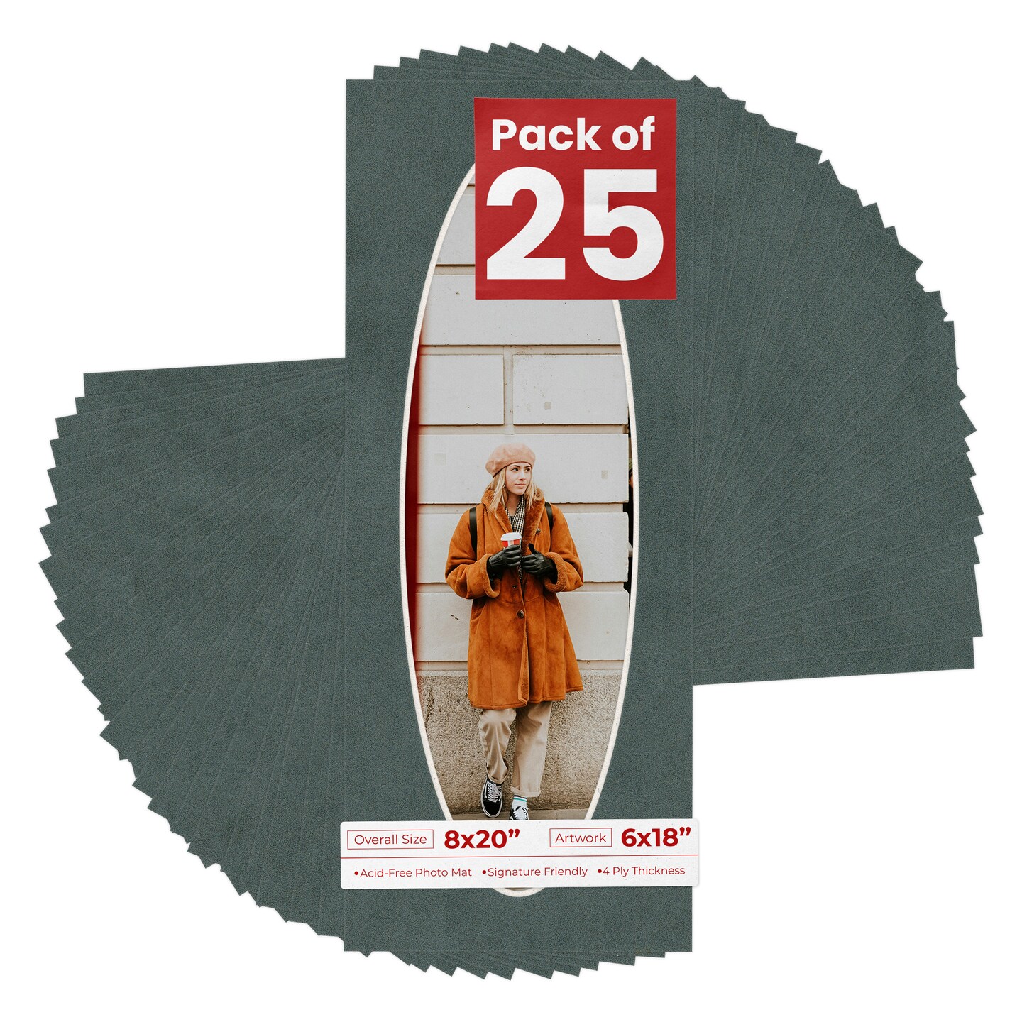 Dark Grey Suede Mat Board for 8x20 Frames - Oval Opening for 6x18 Photos