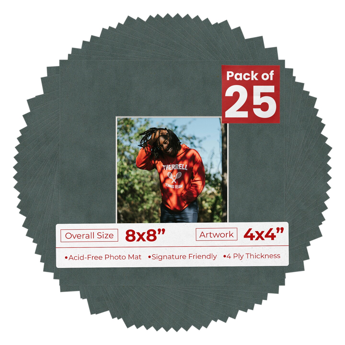 Dark Grey Suede Mat Board for 8x8 Frames - Fits 4x4 Photos