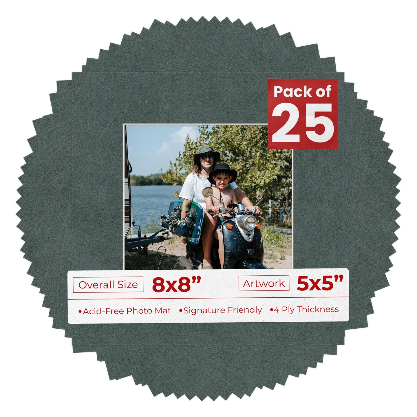 Dark Grey Suede Mat Board for 8x8 Frames - Fits 5x5 Photos