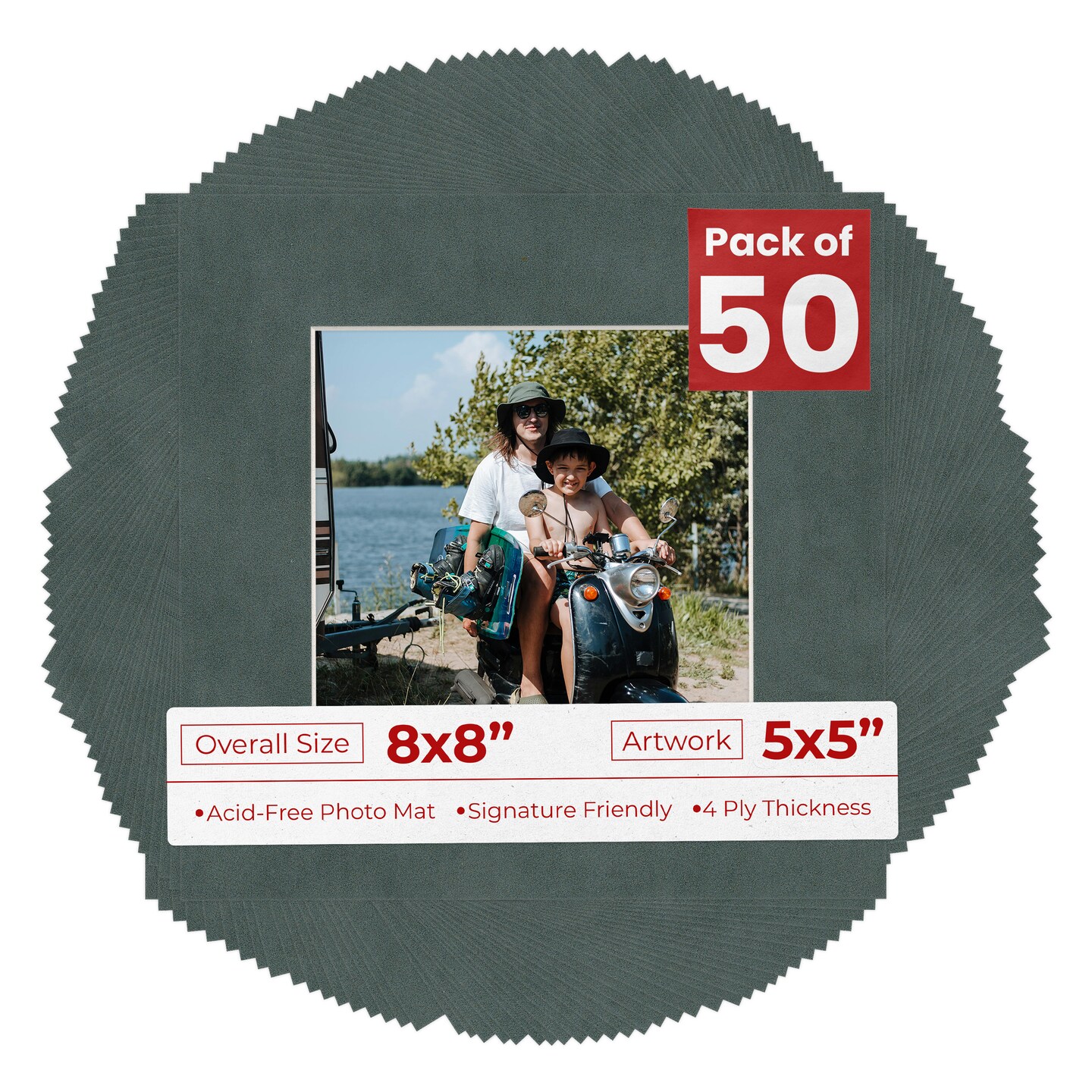 Dark Grey Suede Mat Board for 8x8 Frames - Fits 5x5 Photos